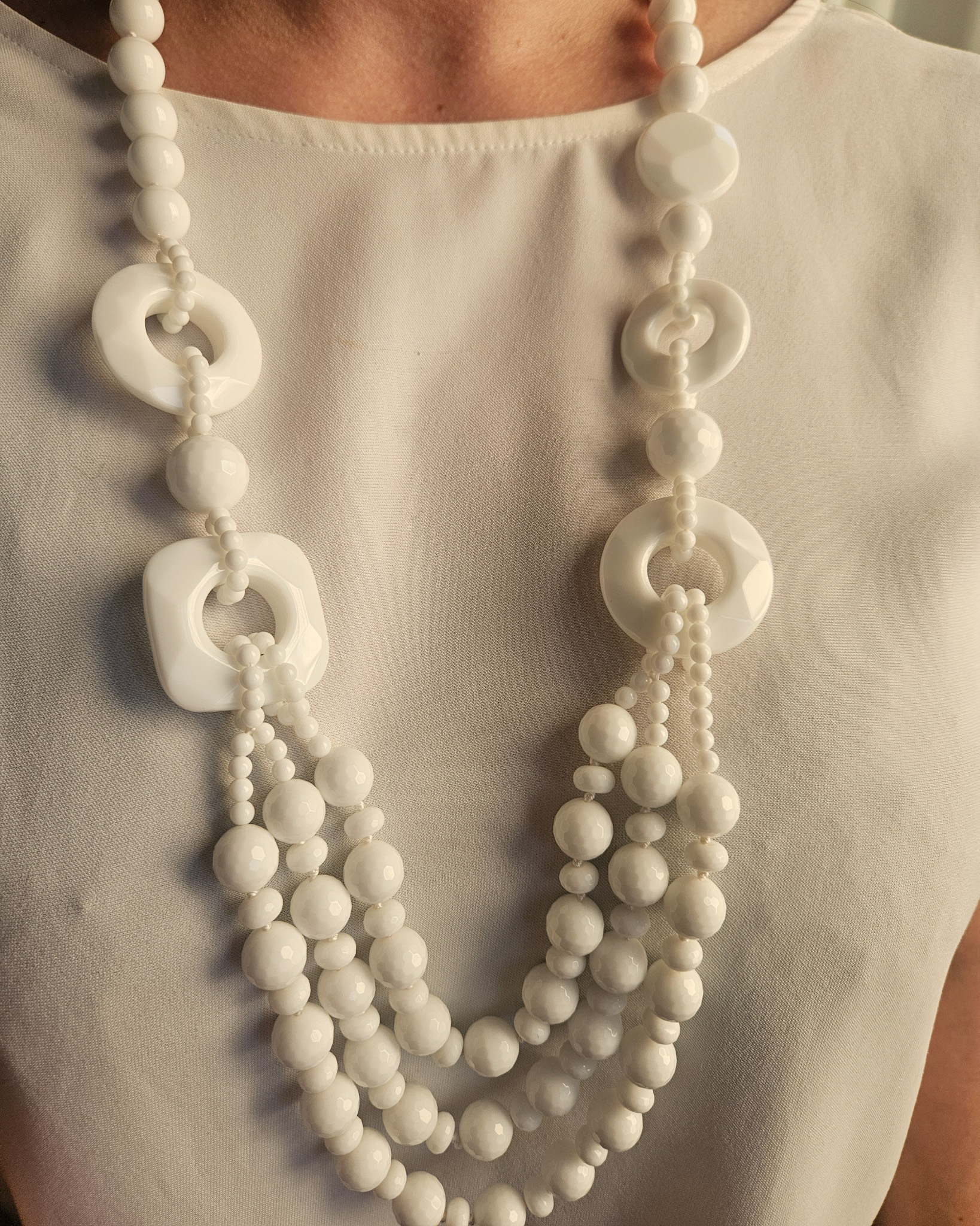 È la scelta ideale per chi ama il look total white invernale: indossata su maglioni morbidi, abiti neutri o tessuti preziosi, aggiunge profondità e luce, valorizzando ogni outfit con un tocco super chic. Allo stesso tempo, è perfetta per le donne che scelgono il bianco tutto l’anno, trasformandolo in una vera e propria firma di stile. La sua versatilità la rende adatta sia a look eleganti sia a combinazioni più casual, senza mai perdere la sua presenza scenica.