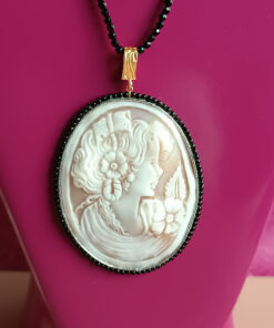 La brillantezza dei cristalli neri ne accresce l’eleganza e insieme al cammeo danno vita ad un gioiello di classe, che caratterizzerà con stile il tuo look.