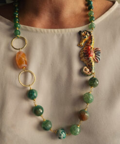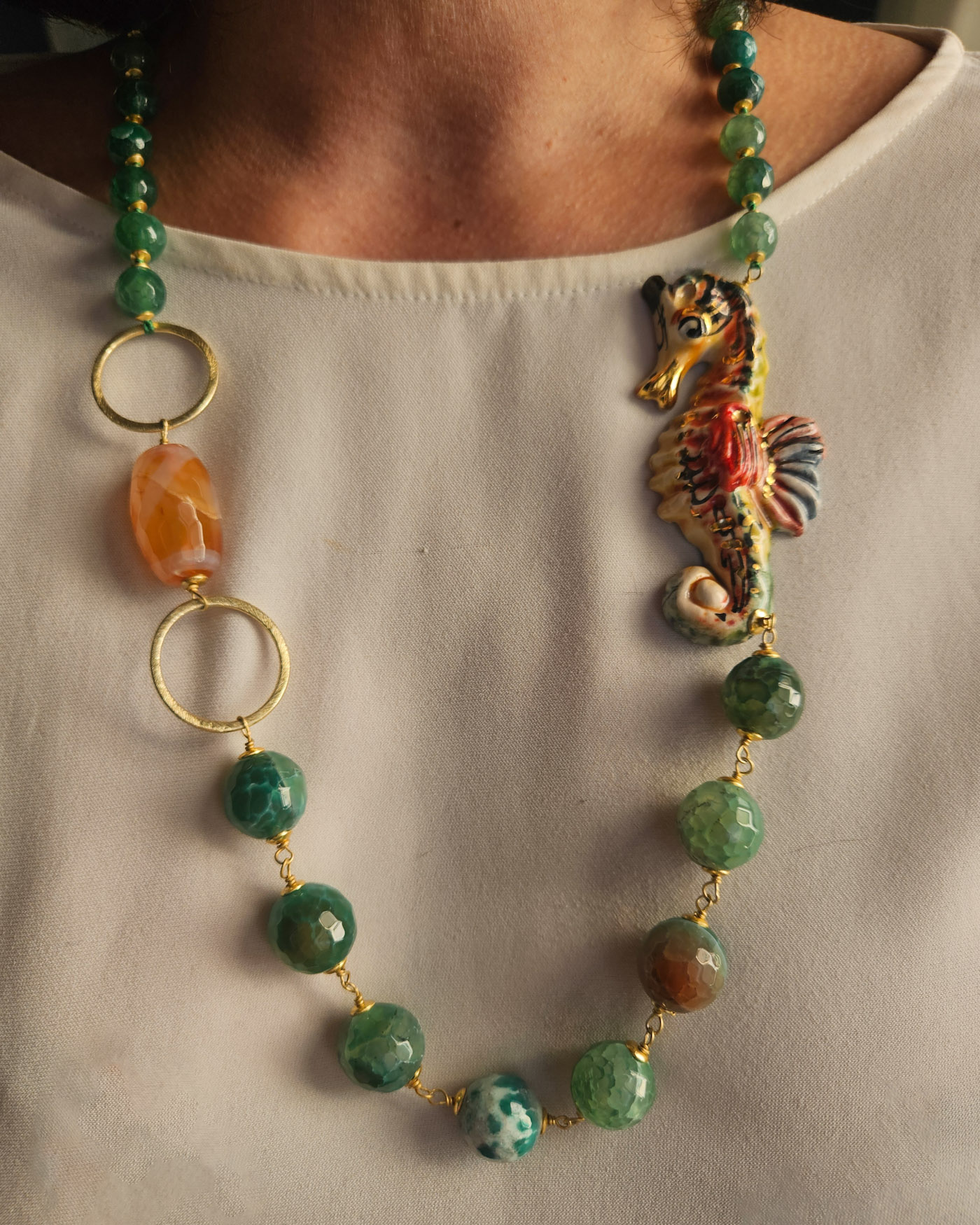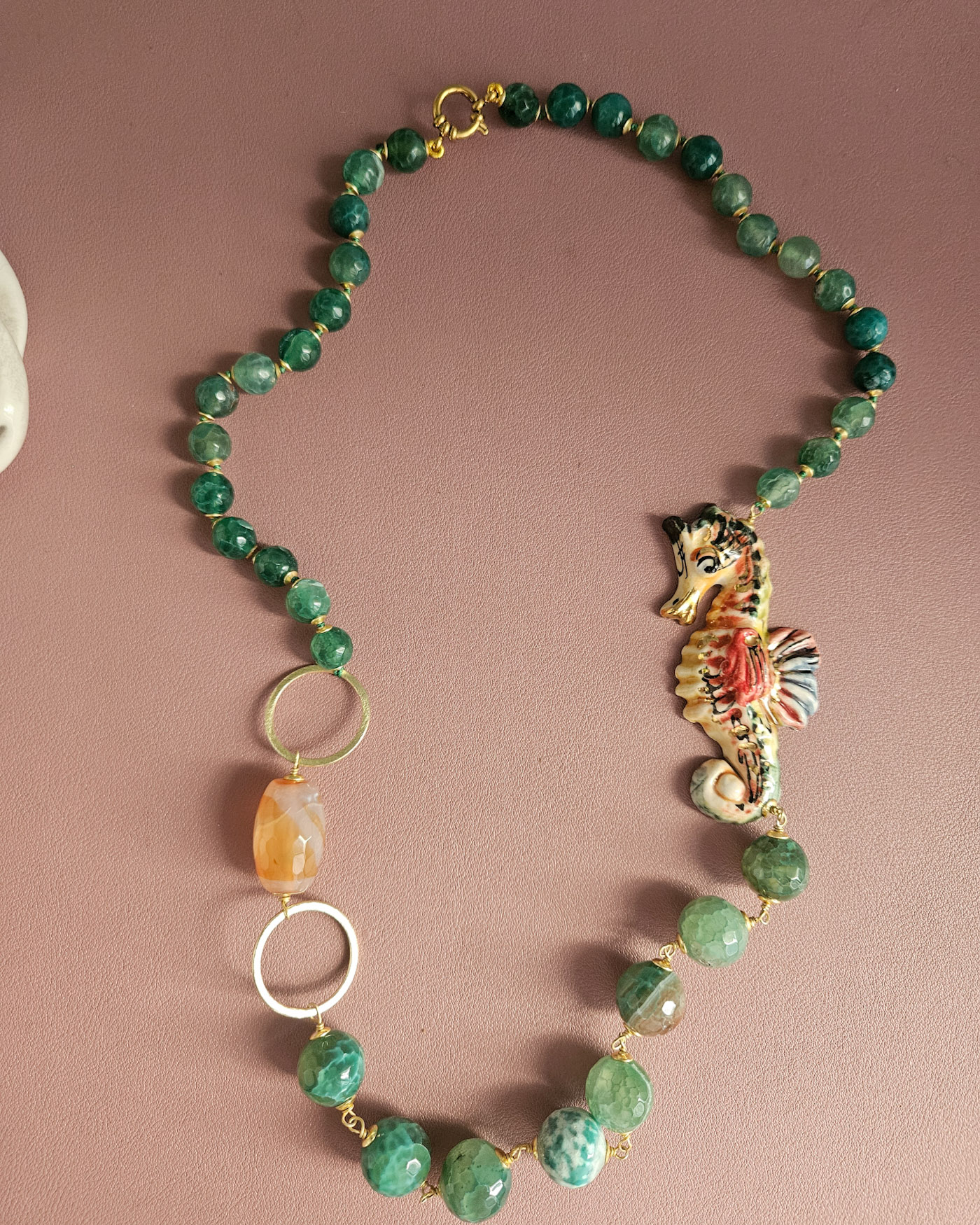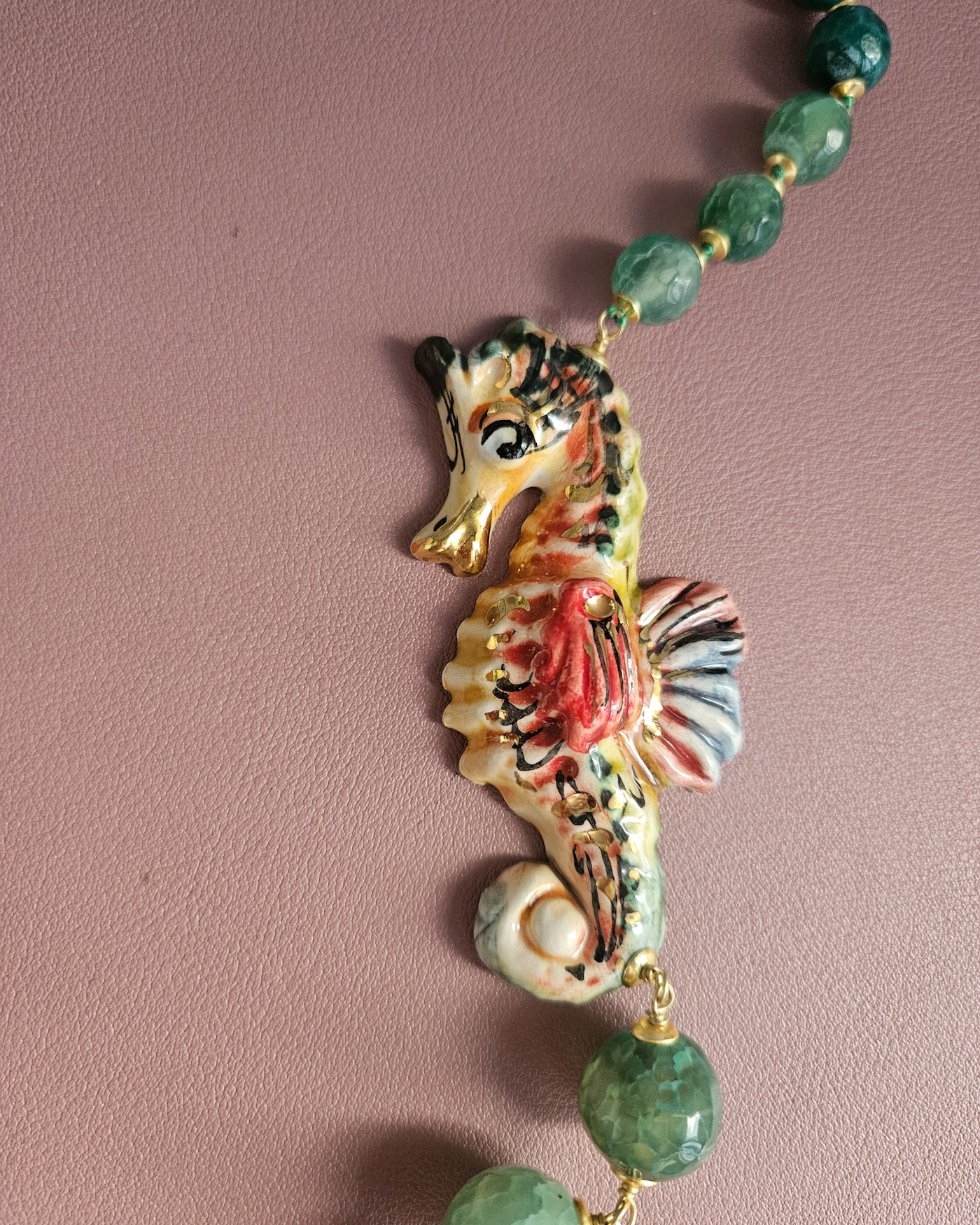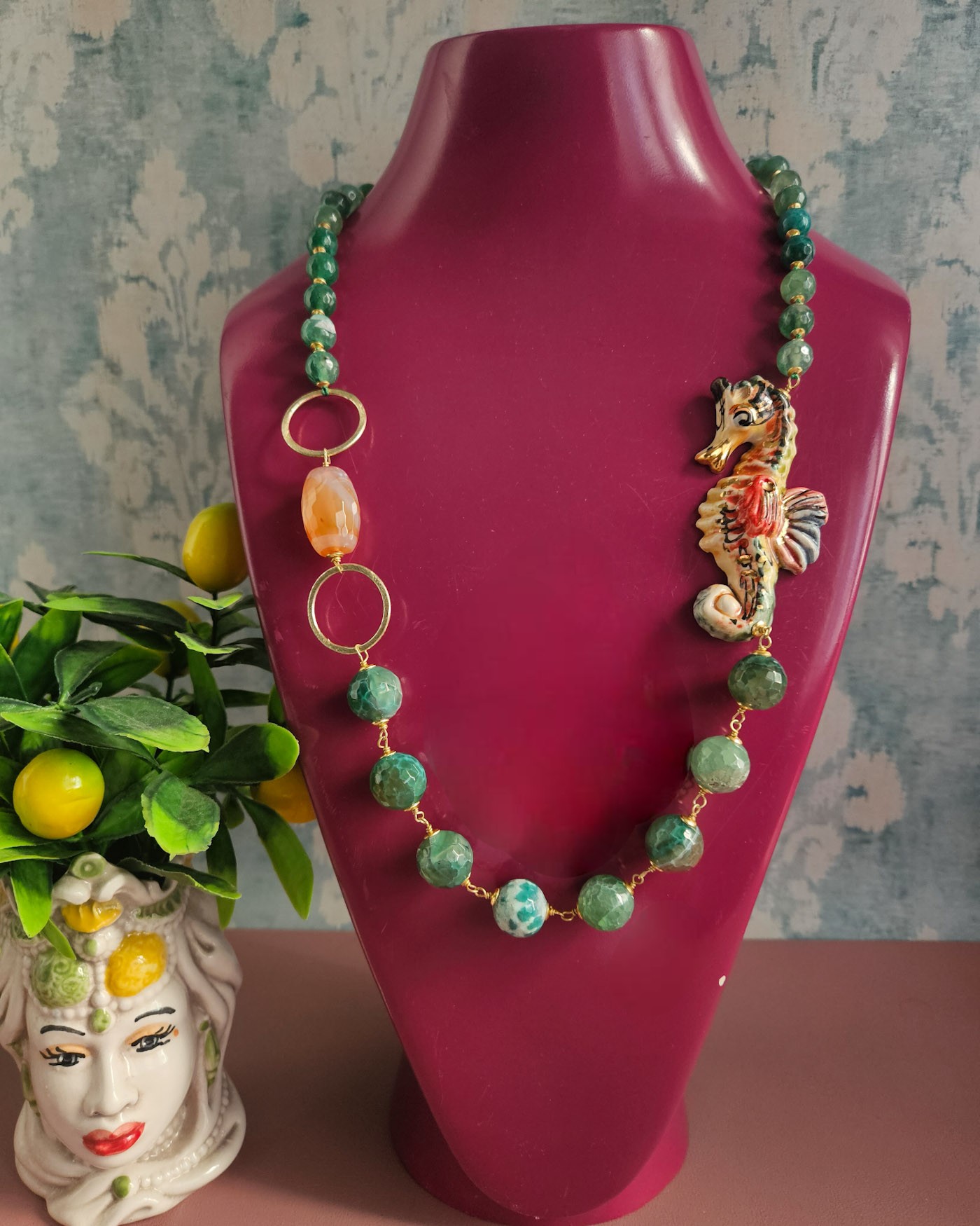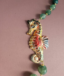 Collana Siciliana con Agata Fuoco e Cavalluccio in Ceramica di Caltagirone