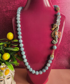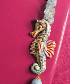Lasciati ispirare dalla signorilità di questa collana, dalla luminosità celestiale dell’angelite, dall’originalità del cavalluccio in ceramica.