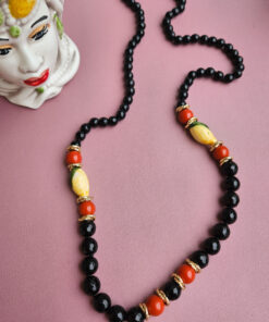 Collana Siciliana con Onice Nero e Limoni in Ceramica di Caltagirone