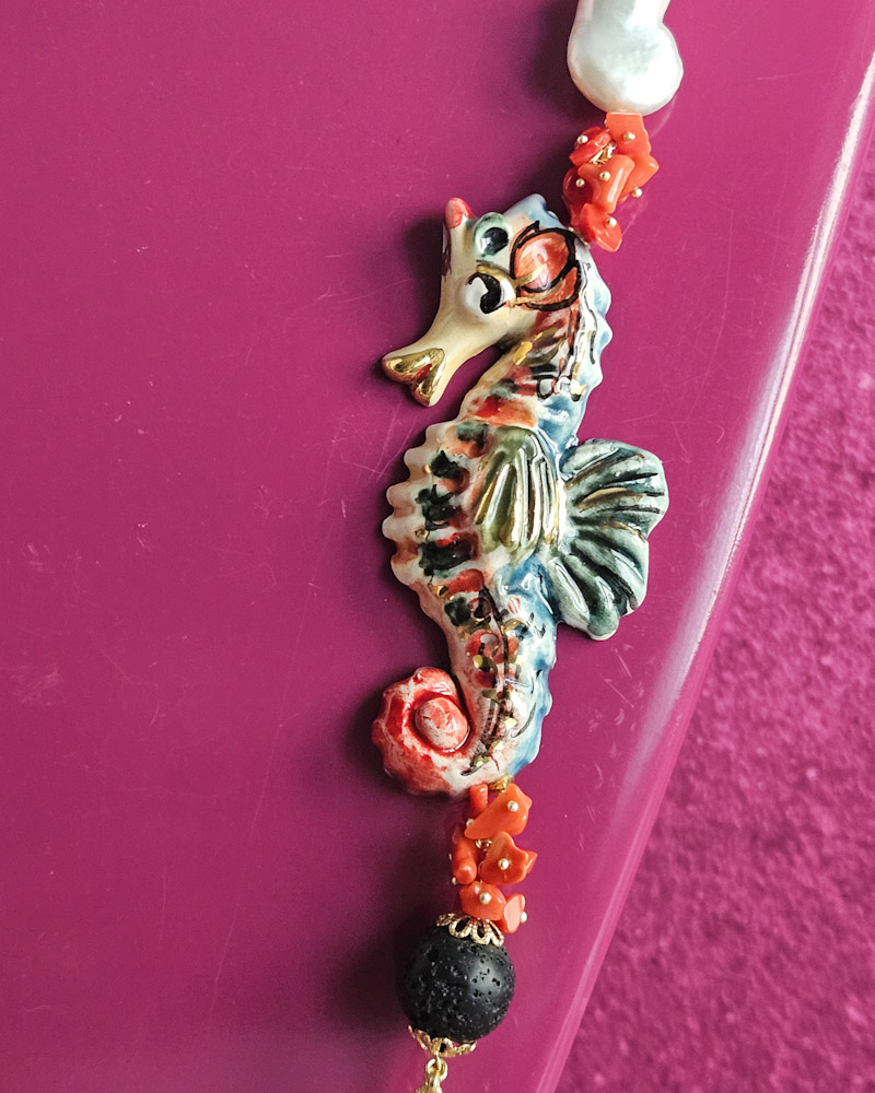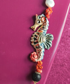 Lasciati ispirare dalla signorilità di questa collana, dai suoi caratteri cosi fortemente siciliani, dall’originalità del cavalluccio in ceramica.