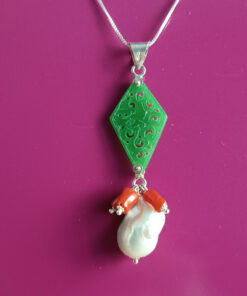 Collana ZINGARA in Argento 925 con Pendente con Giada Verde e Perla Barocca