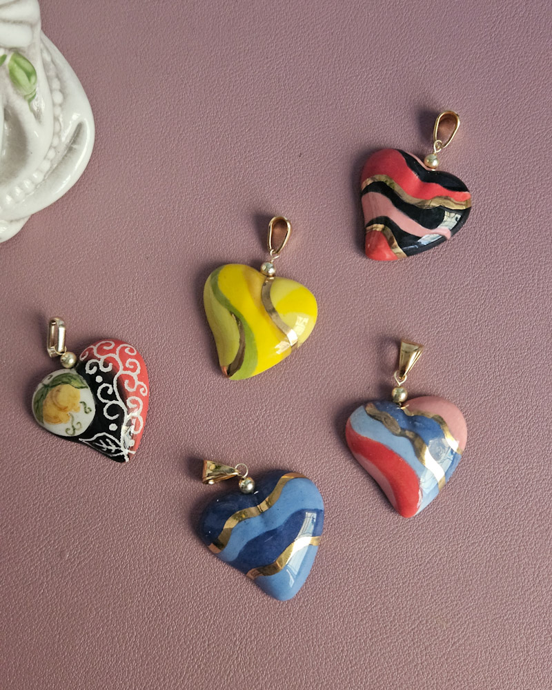 Deliziosi cuori in ceramica finemente dipinta a mano. Un ciondolo super colorato da portare sempre con te.