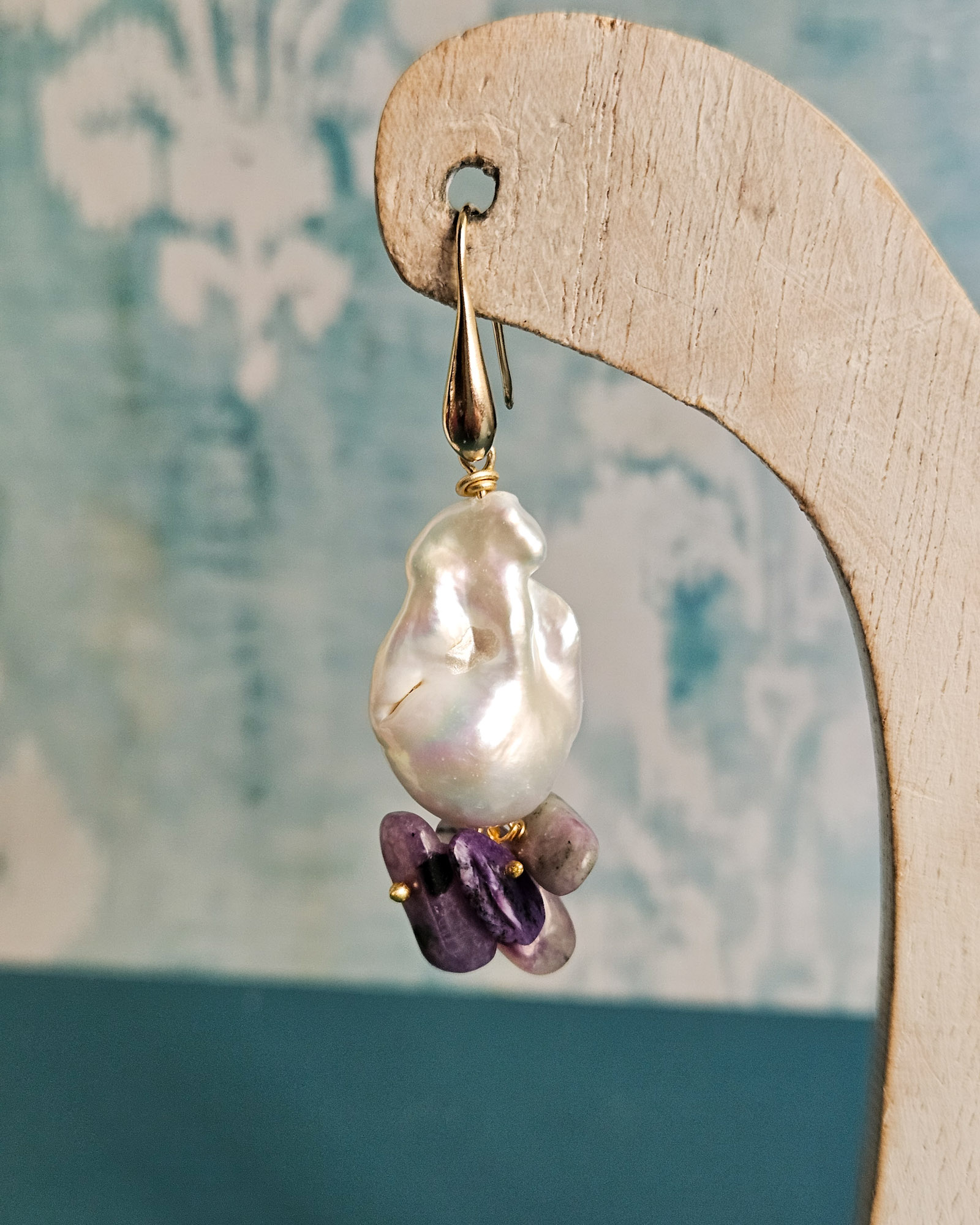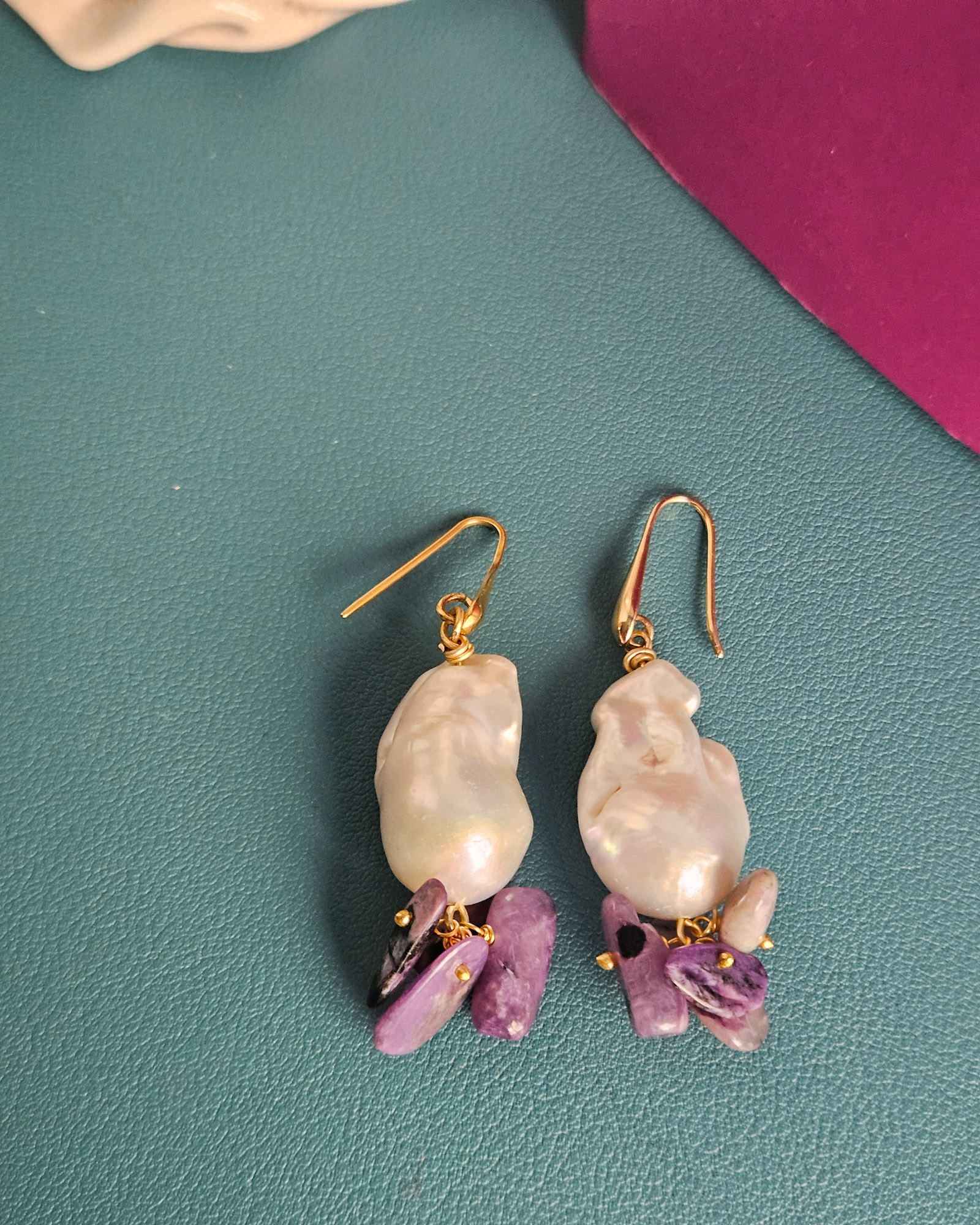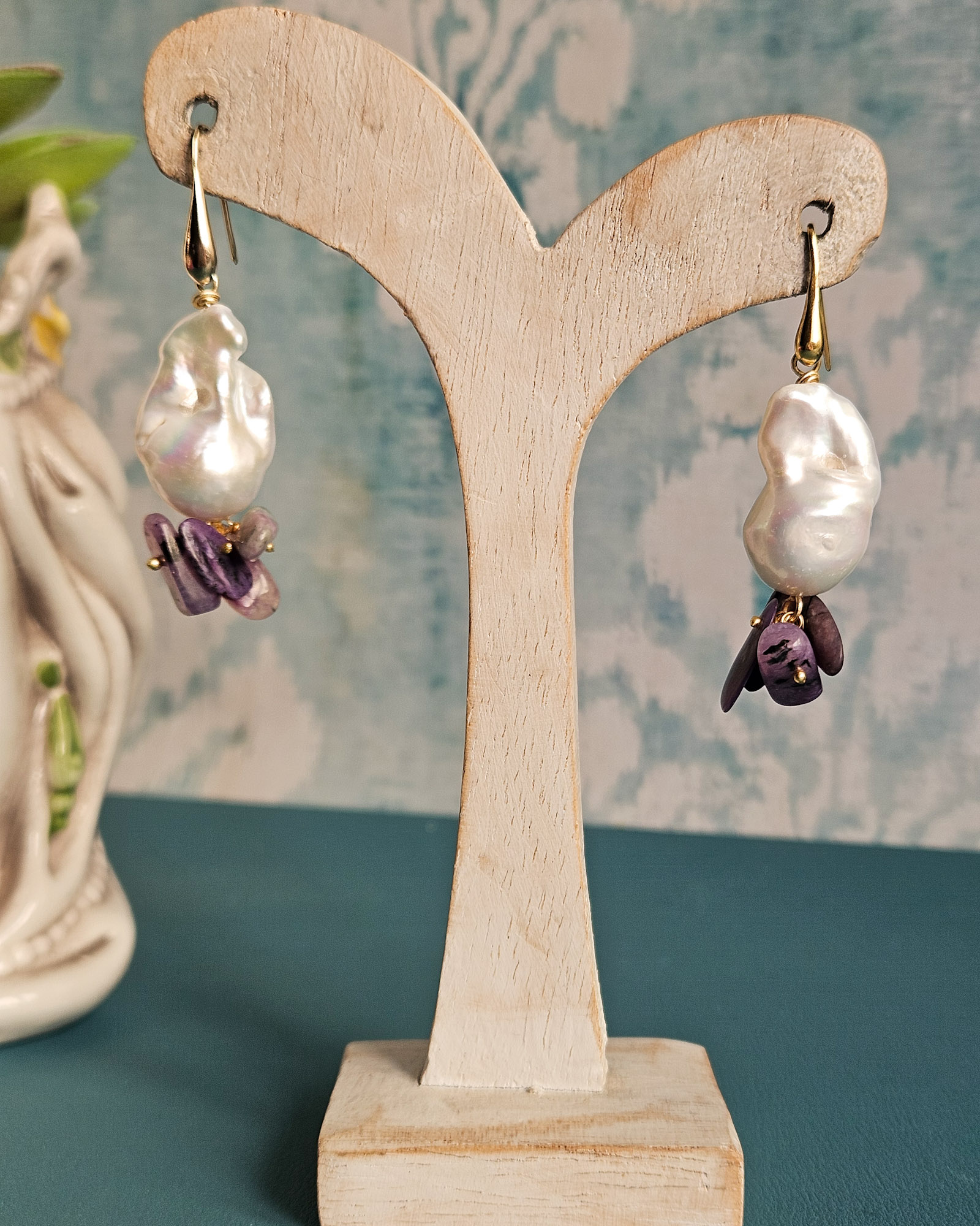 Orecchini a Goccia con Perle Barocche e Sugilite Viola