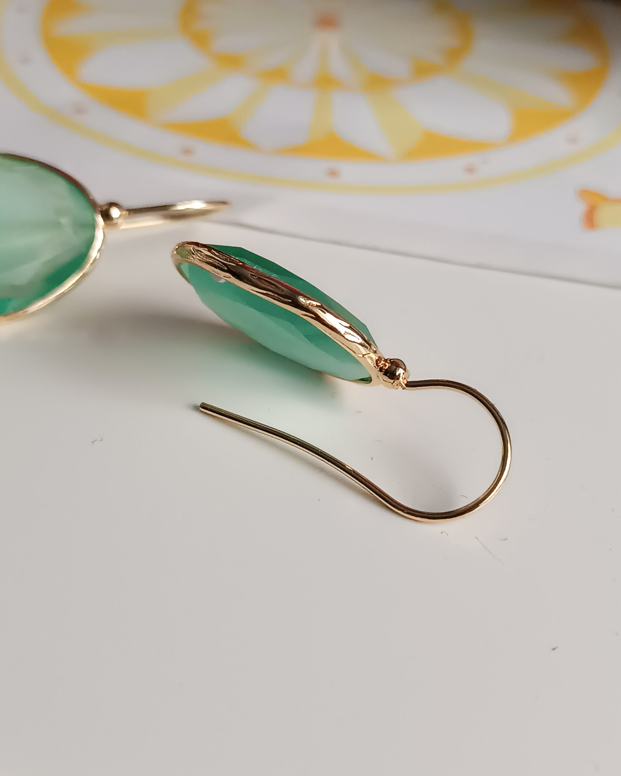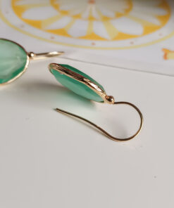 Orecchini a Goccia in Ottone con Occhio di Gatto Verde Menta