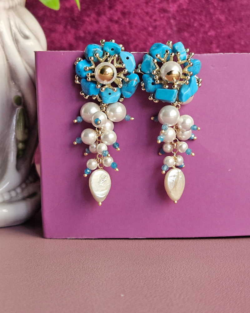 Orecchini a Grappolo con Perle di Maiorca e Turchese