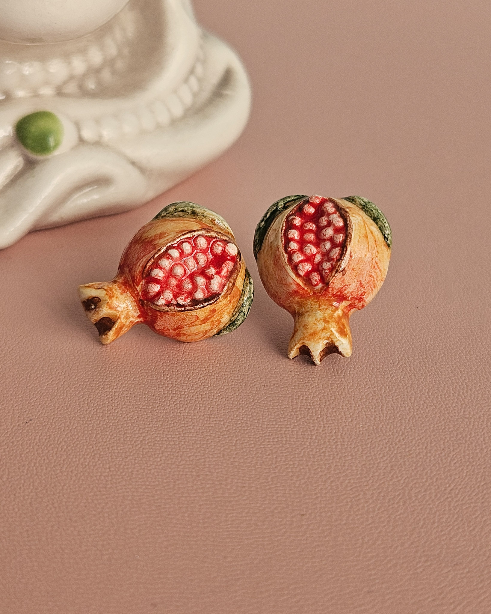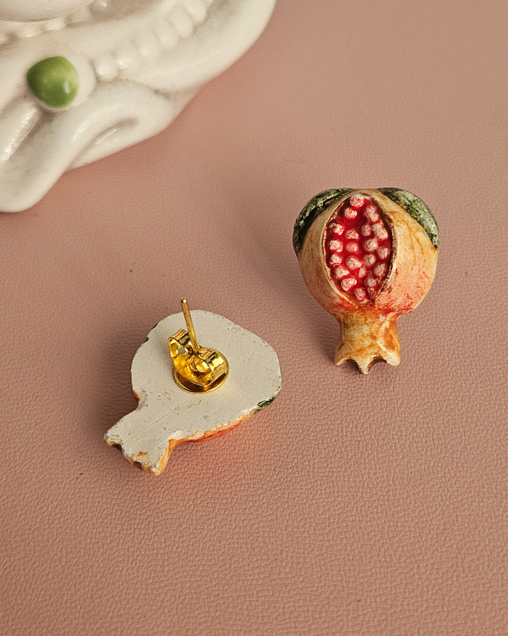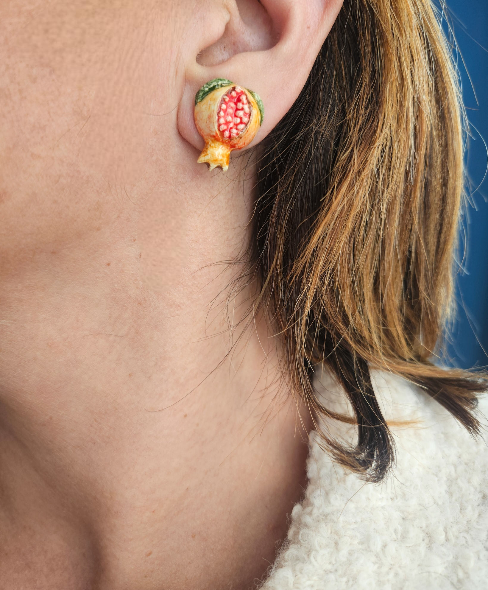 Orecchini al Lobo con Melograni in Ceramica di Caltagirone