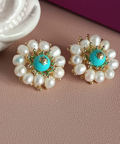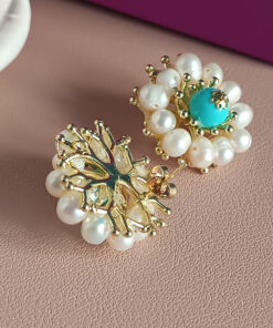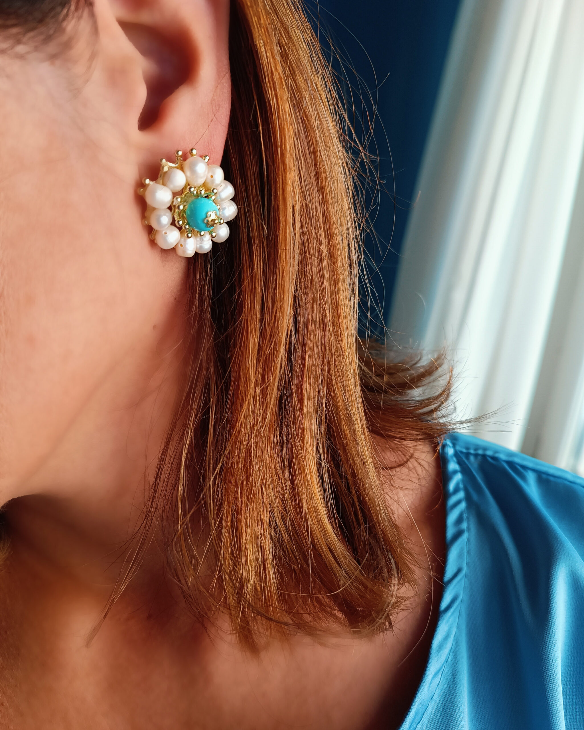 Orecchini Fiore al Lobo con Perle di Fiume e Turchese