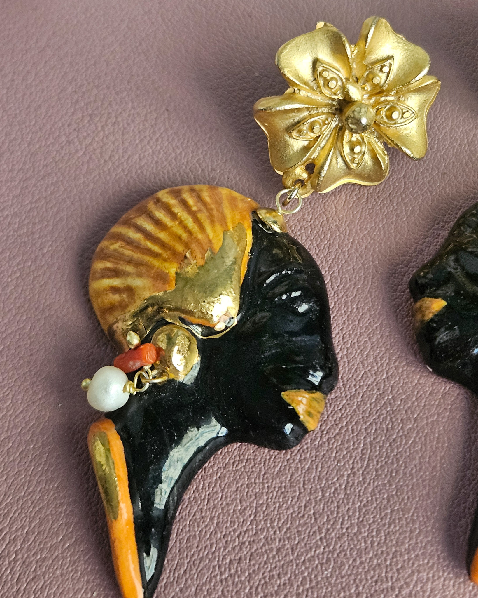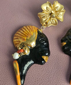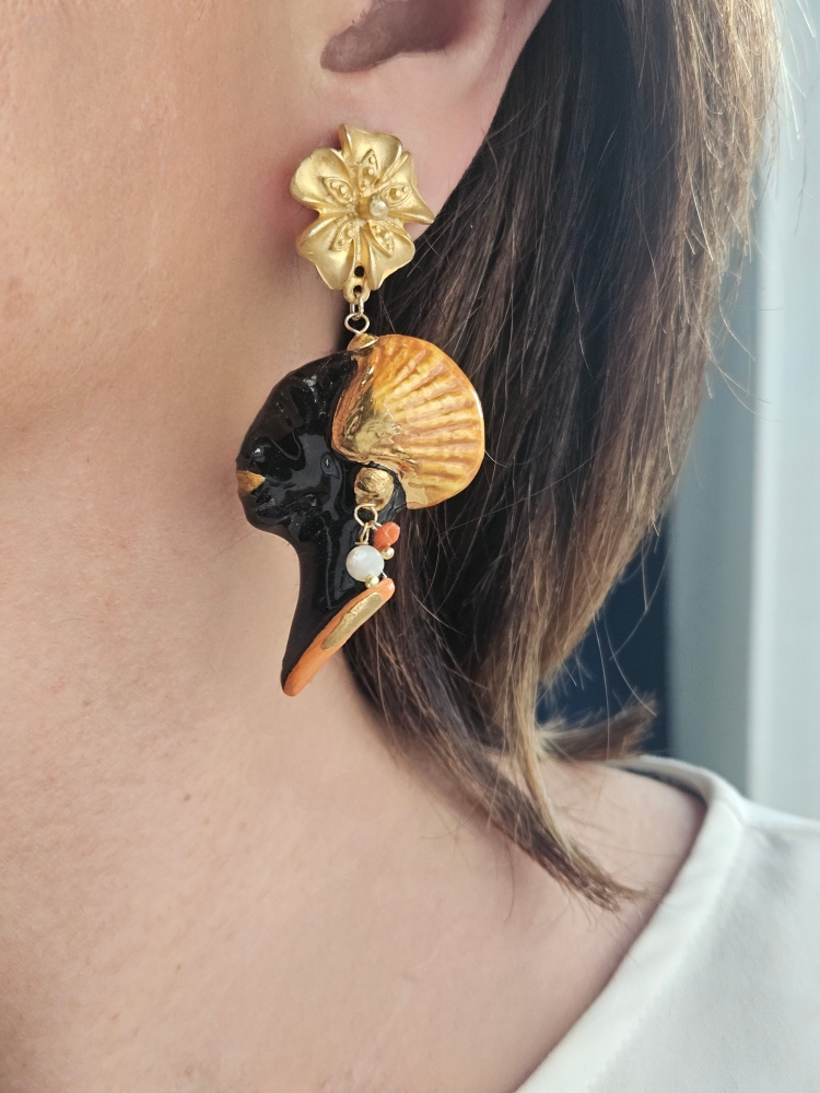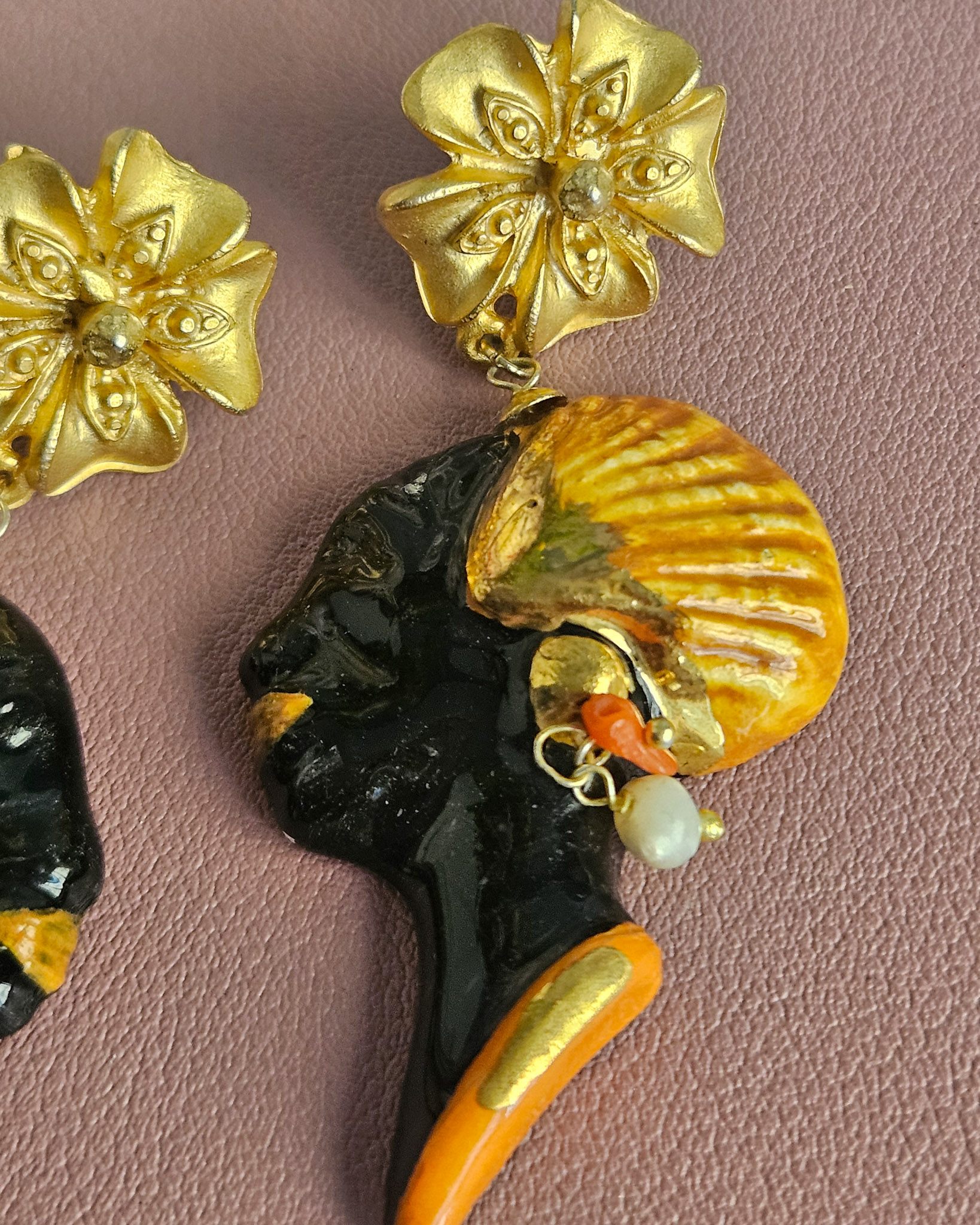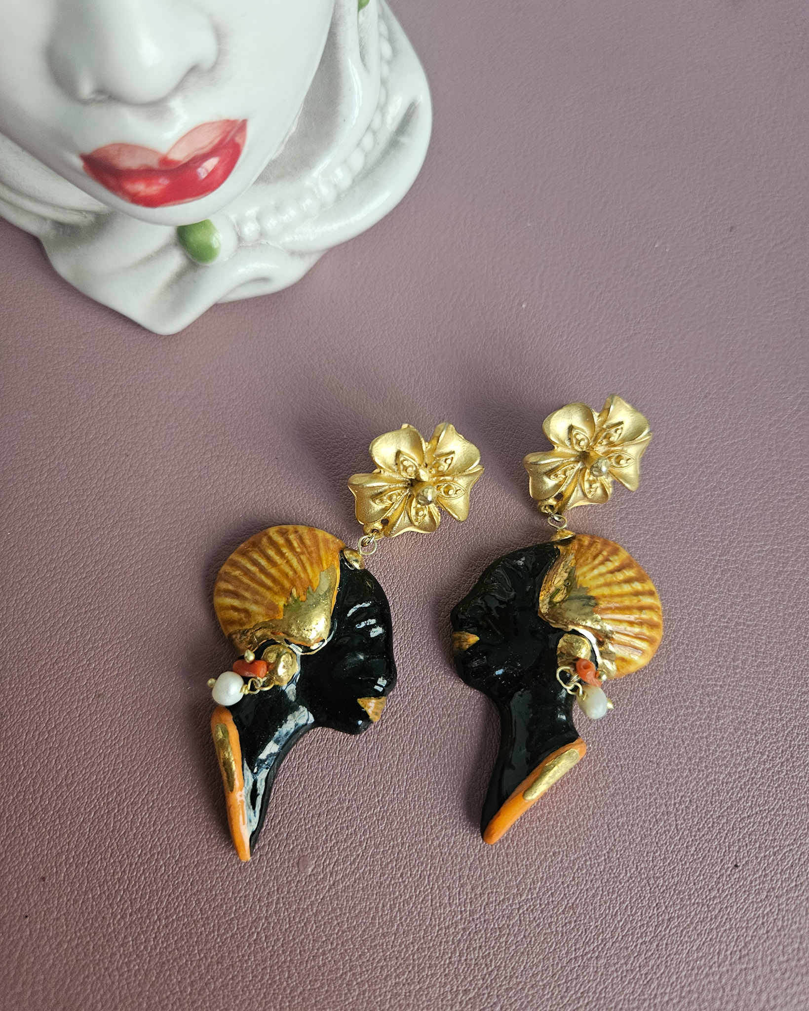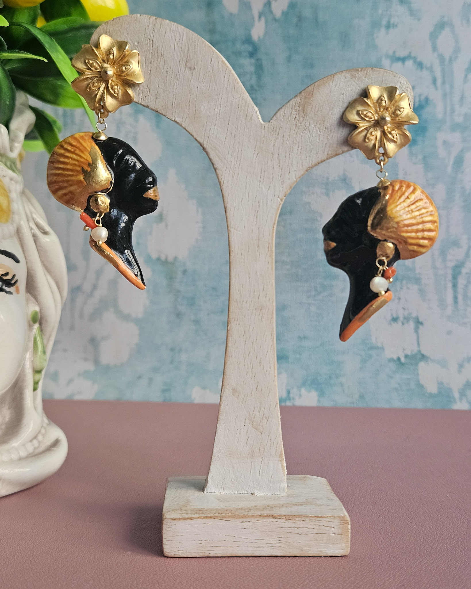 Orecchini LA MIA AFRICA con Teste di Donna in Ceramica di Caltagirone Dipinta a Mano