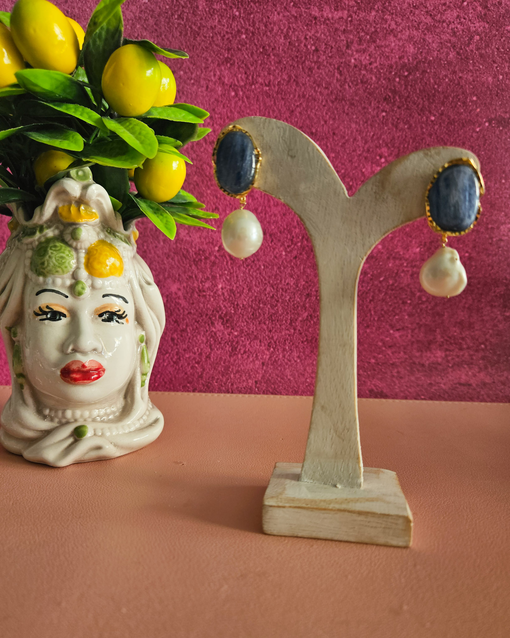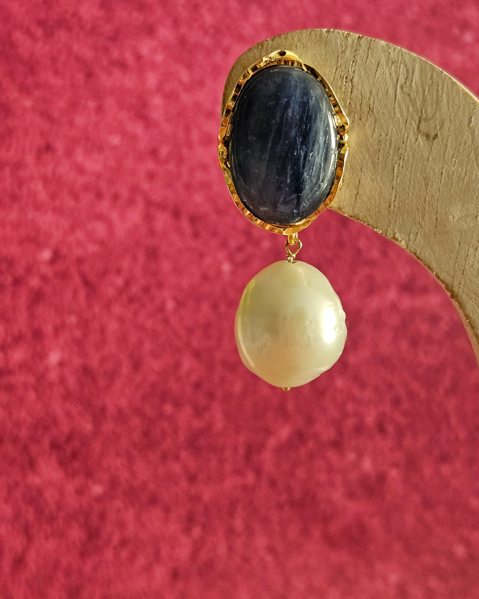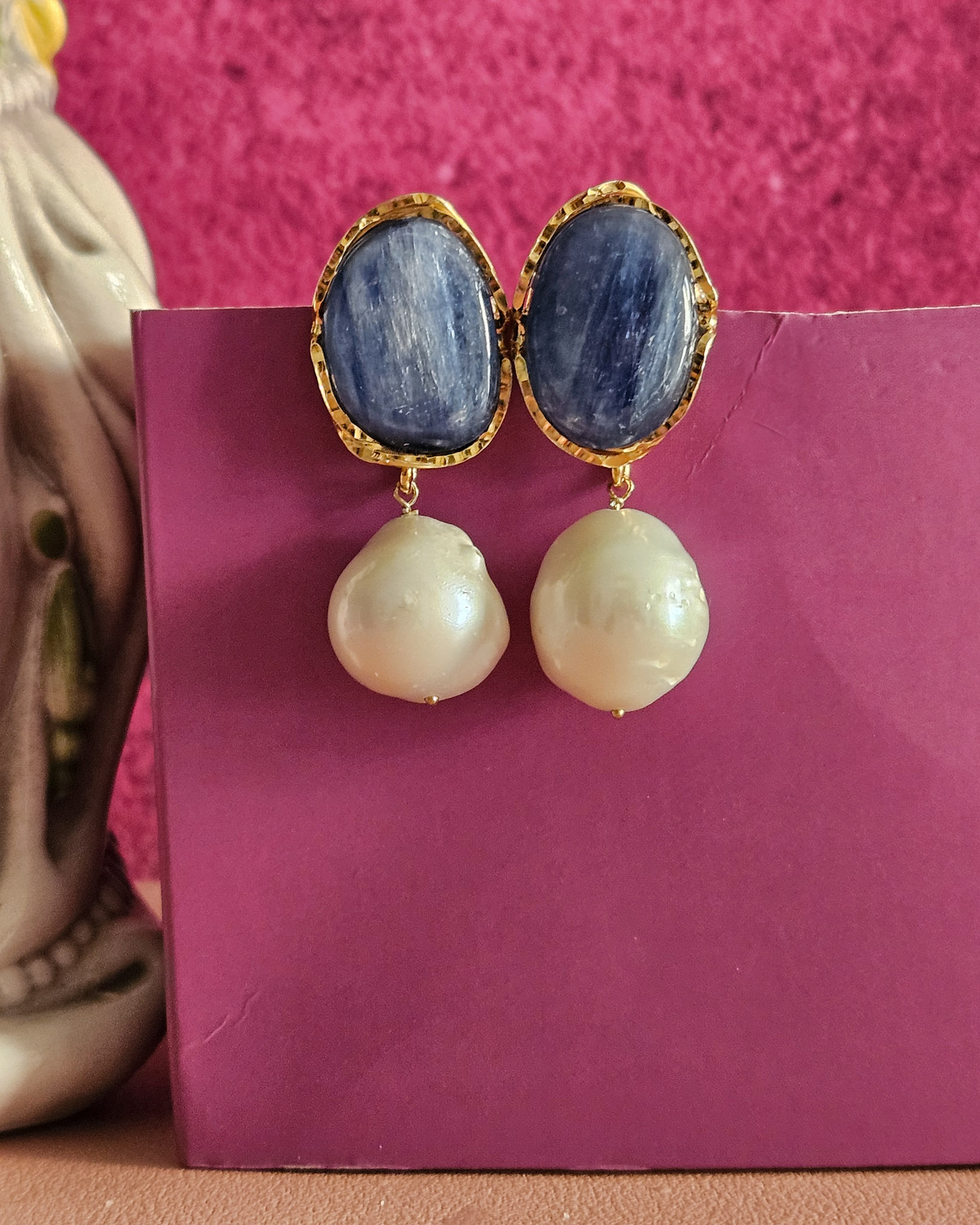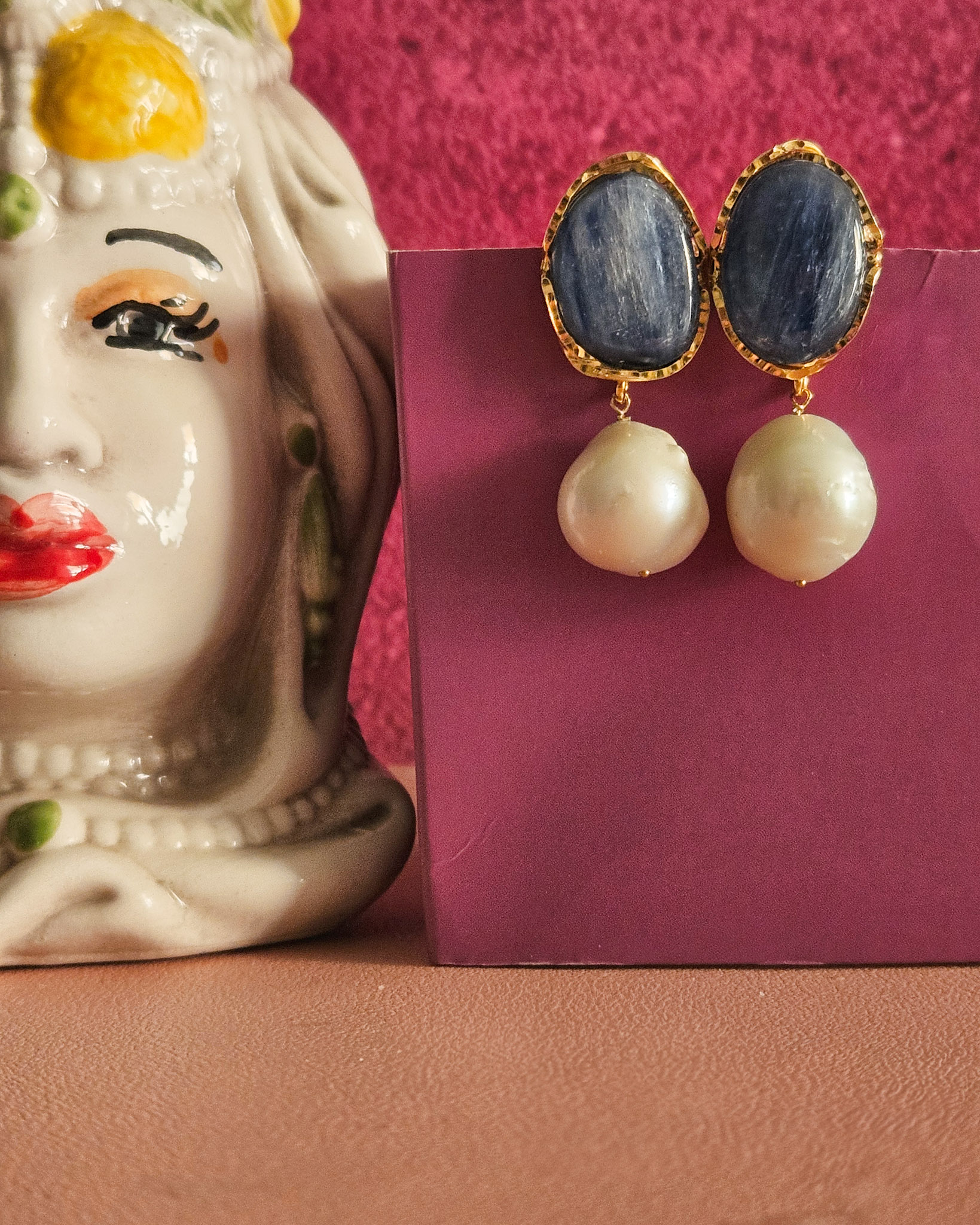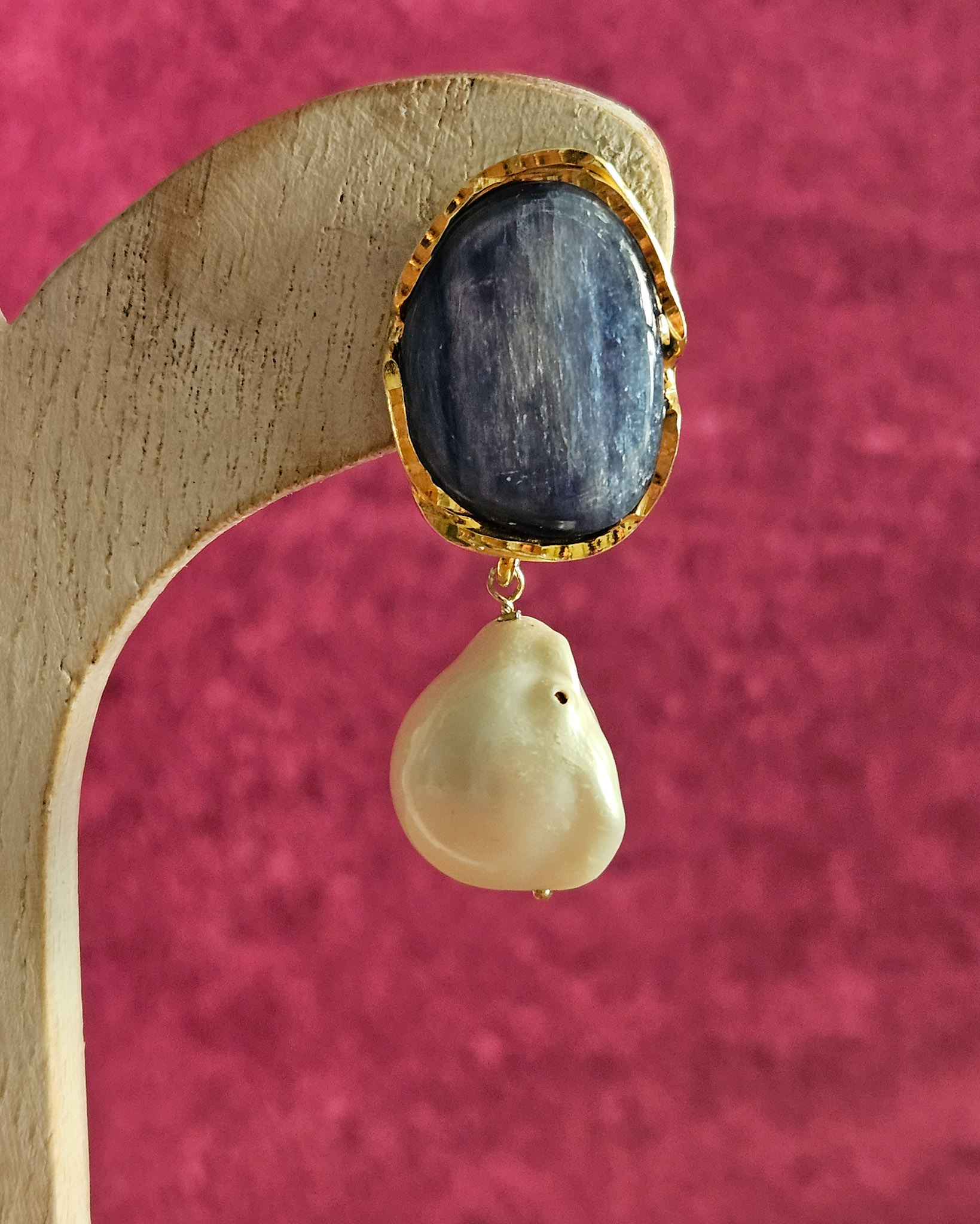 – Basi orecchino in Argento 925 placcato oro con Cianite naturale incastonata.