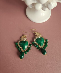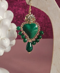 Orecchini Pendenti con Cuori Sacri in Ottone e Agata Verde