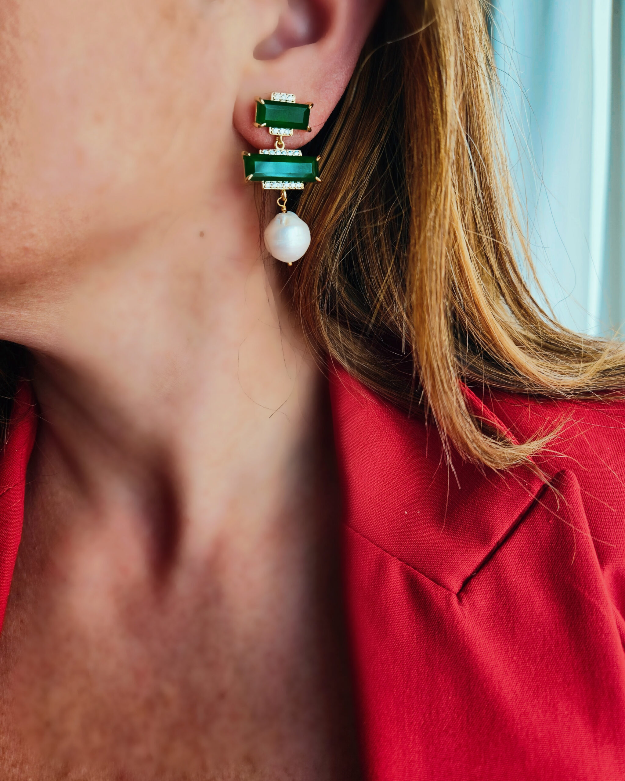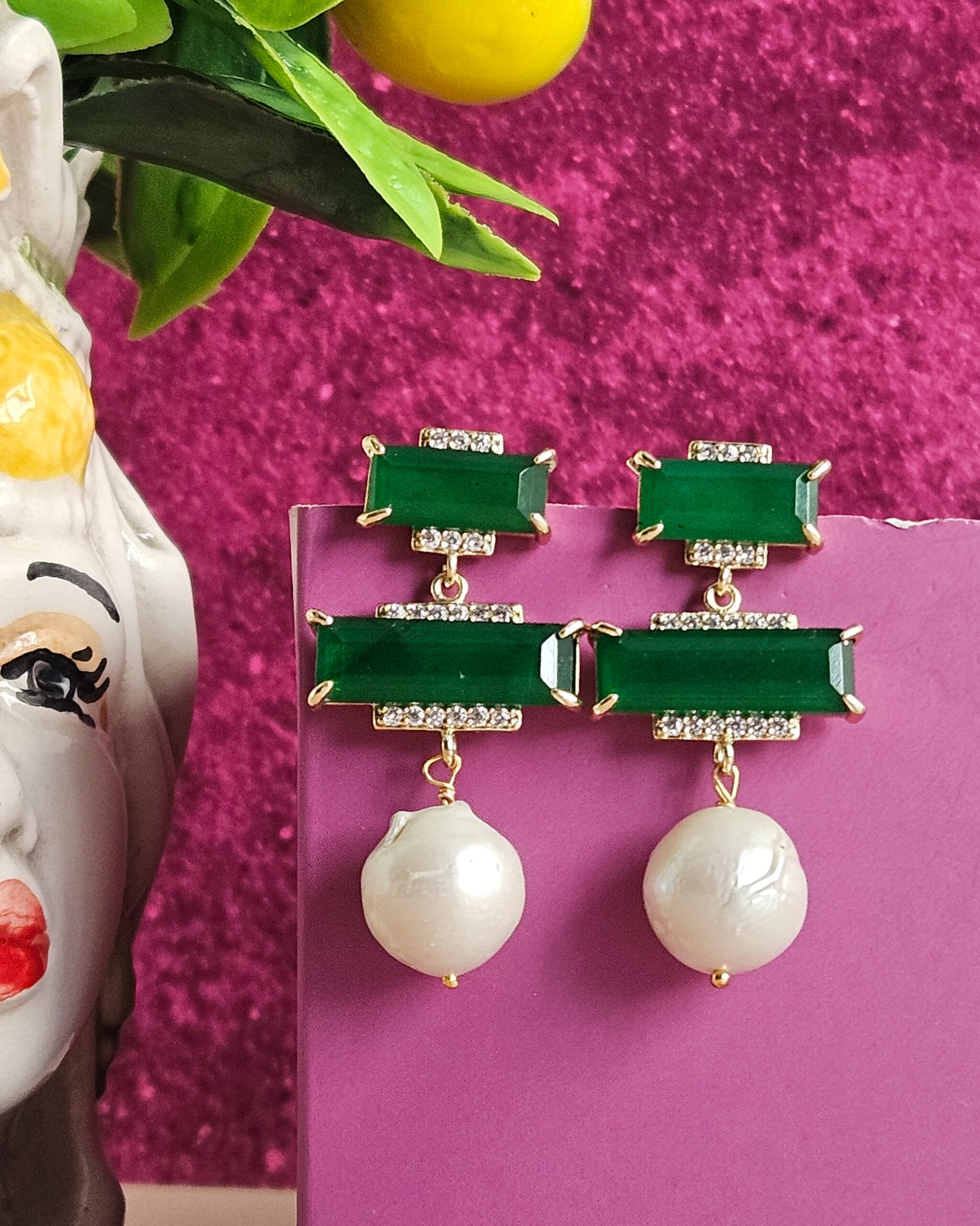 Orecchini Pendenti con Giada Verde e Perle Barocche