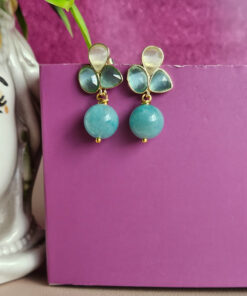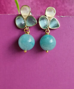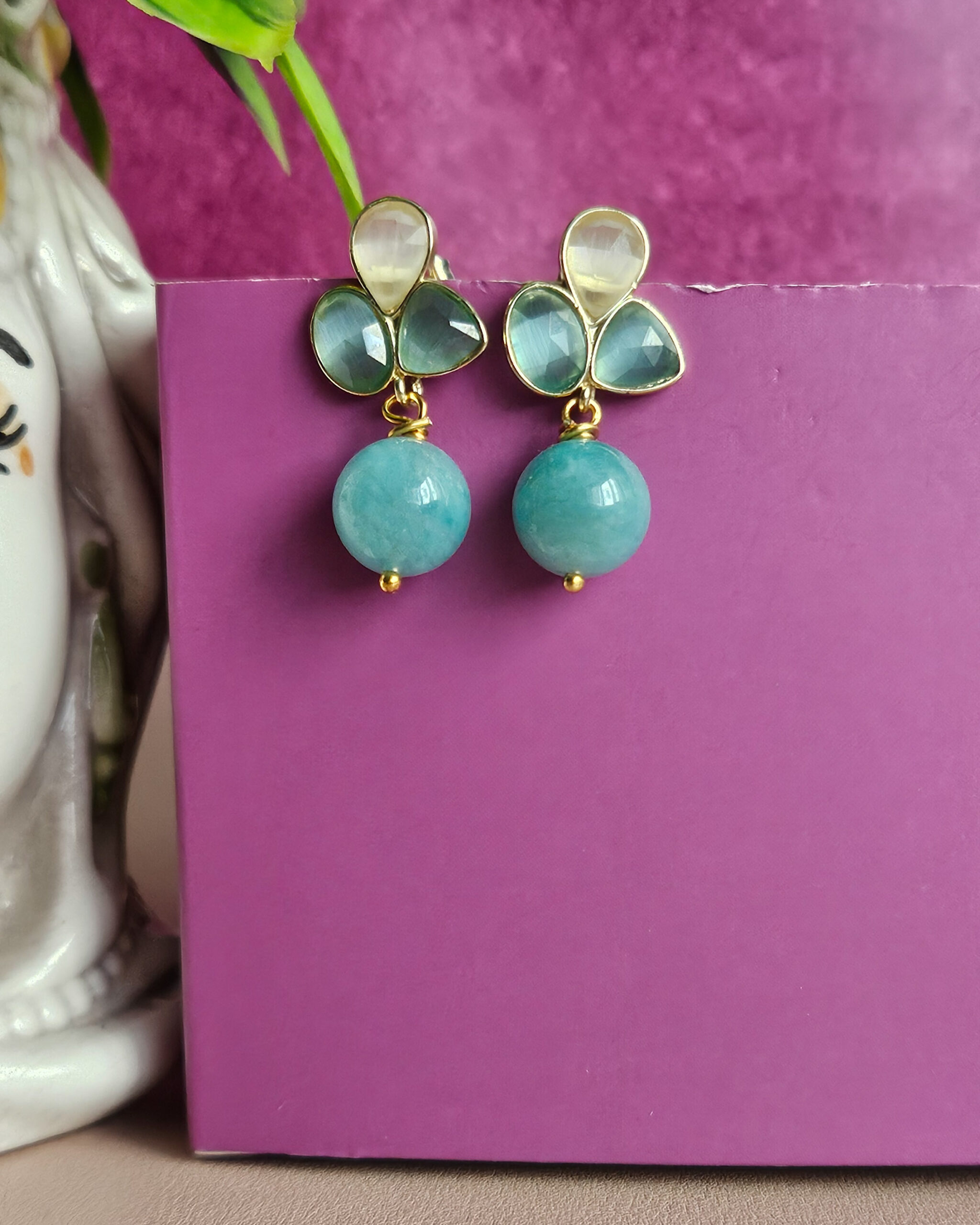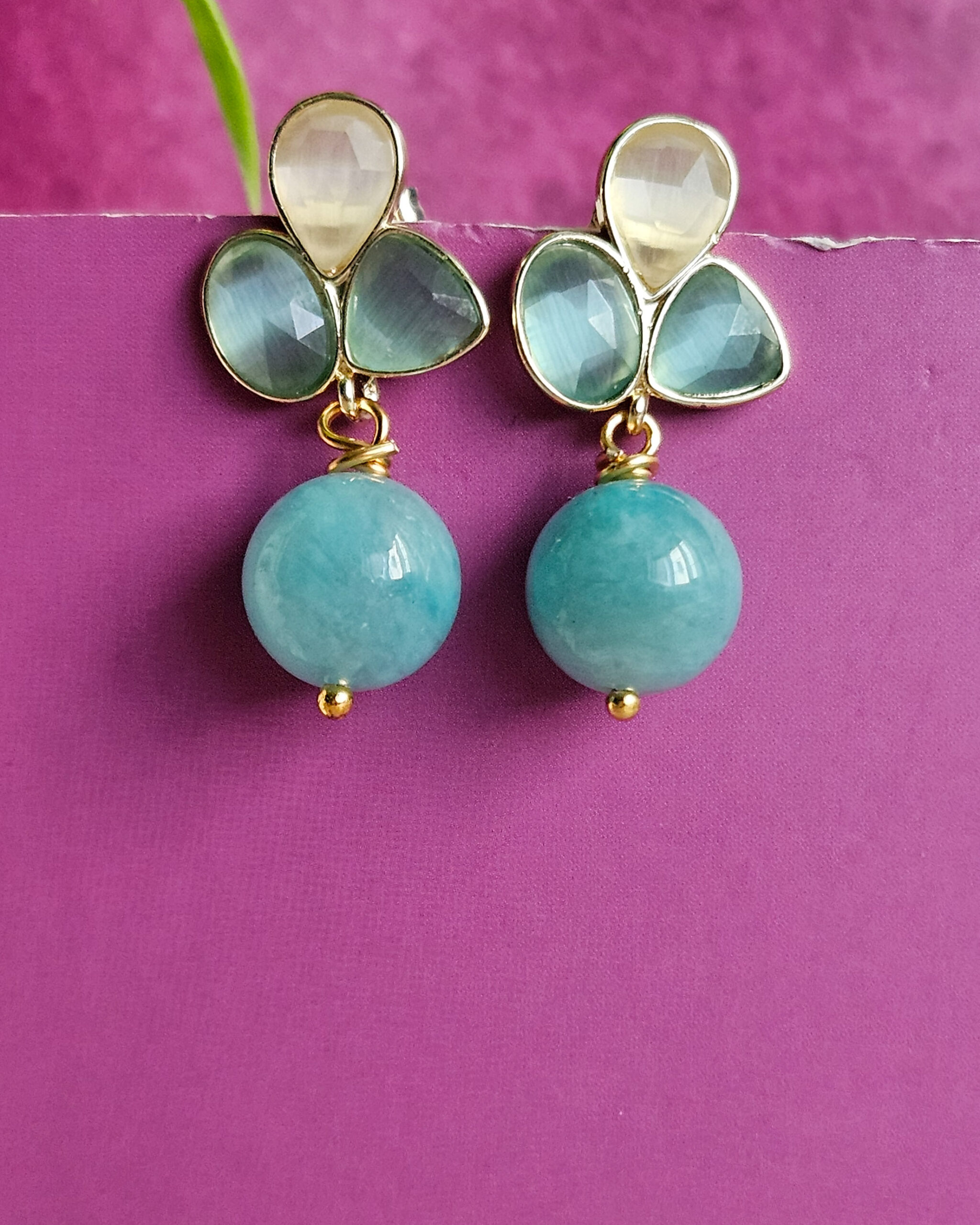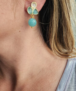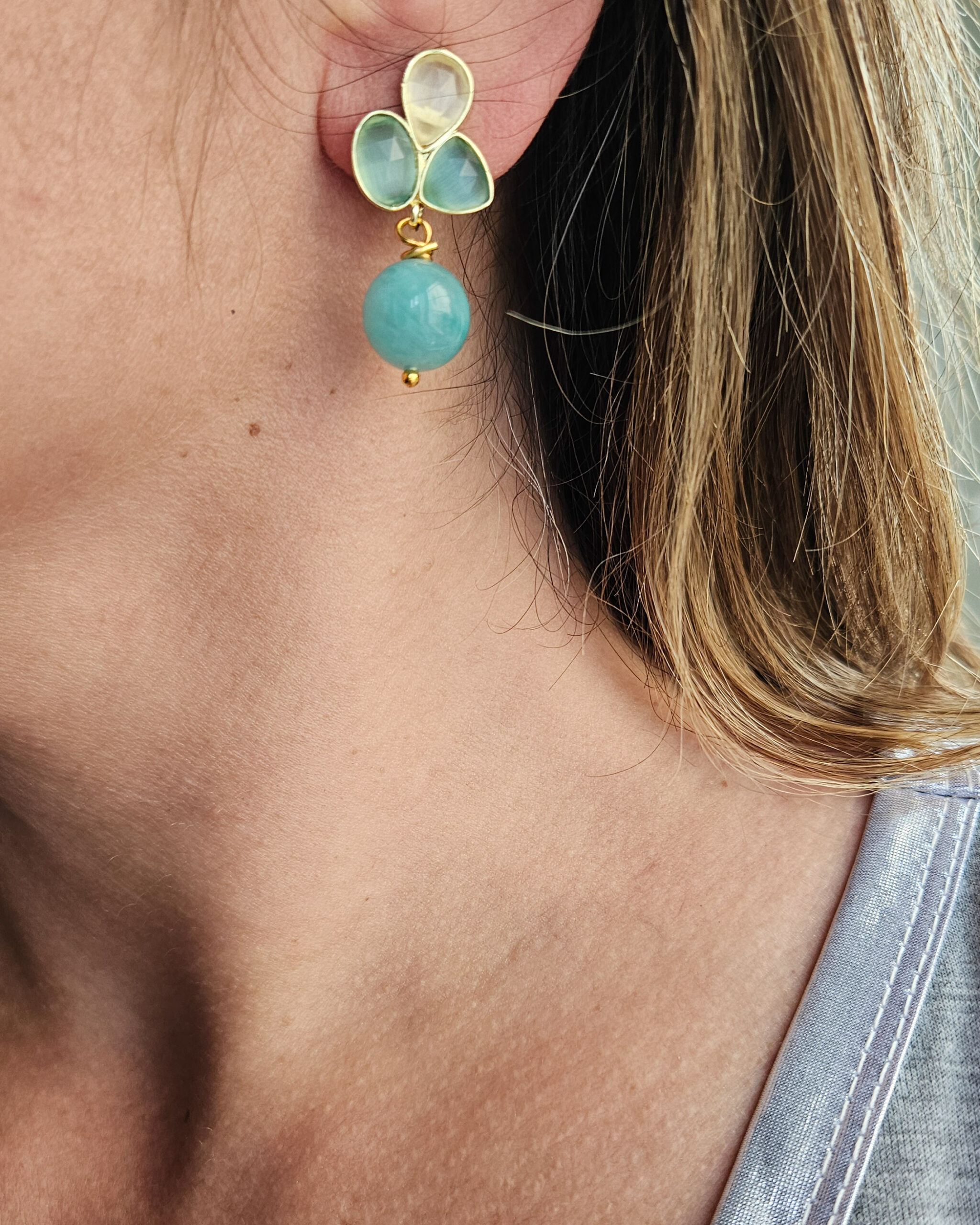 Orecchini di rara bellezza realizzati con amazzonite naturale e occhio di gatto.