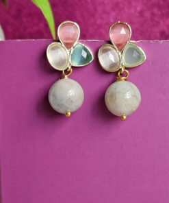 Orecchini Pendenti in Argento 925 con Morganite e Occhio di Gatto
