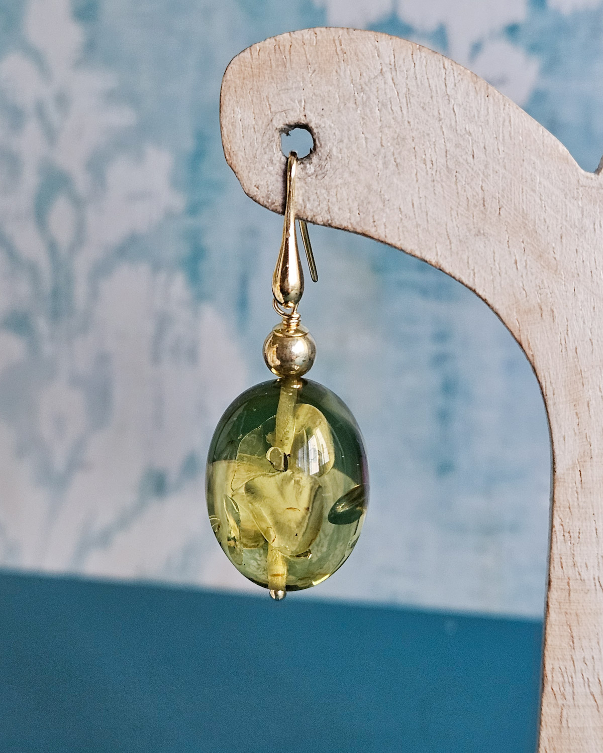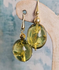 Orecchini Pendenti in Argento 925 Placcato Oro con Ambra Messicana