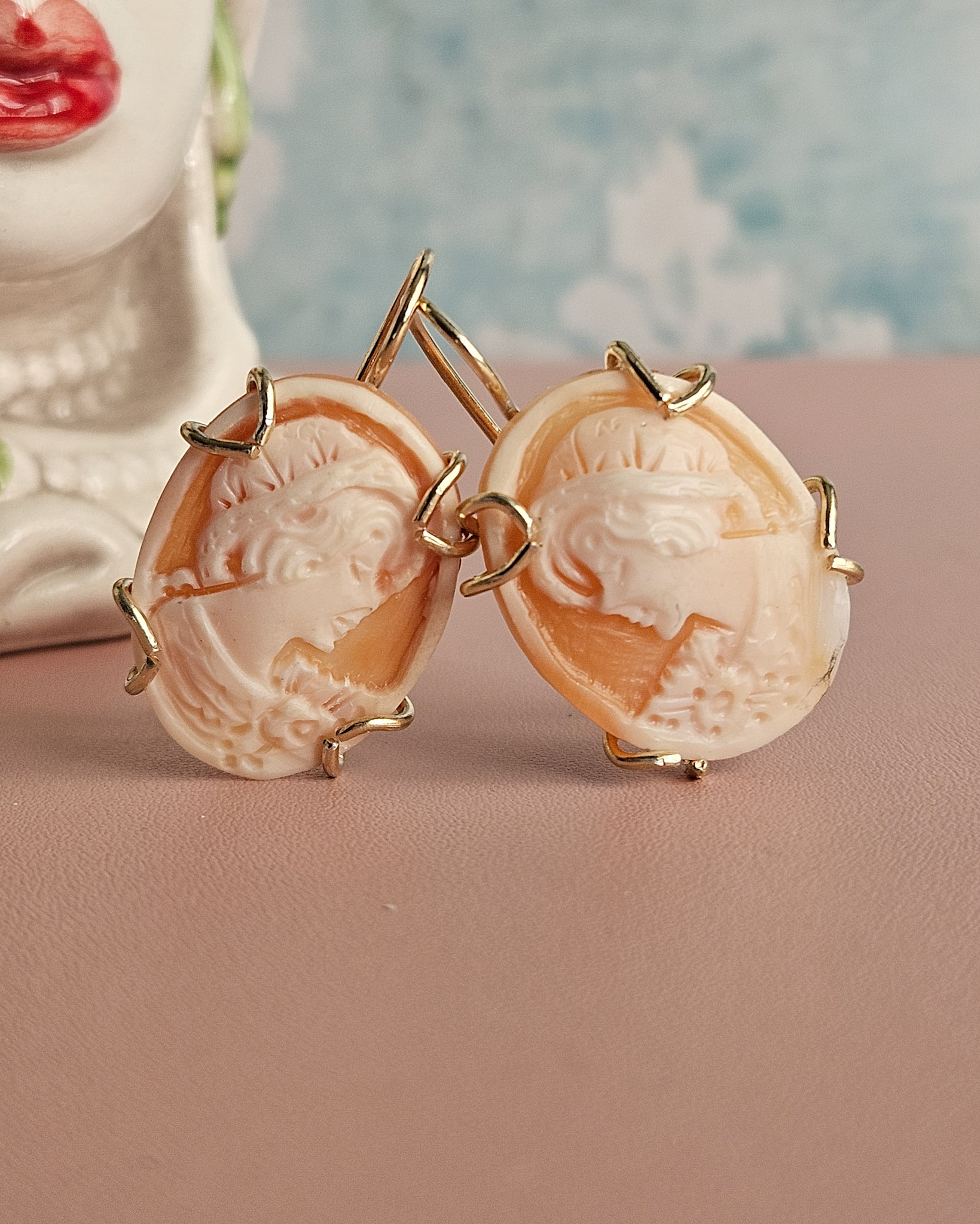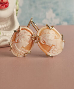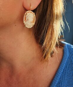 Orecchini Pendenti in Argento 925 Placcato Oro con Cammei Conchiglia di Torre del Greco