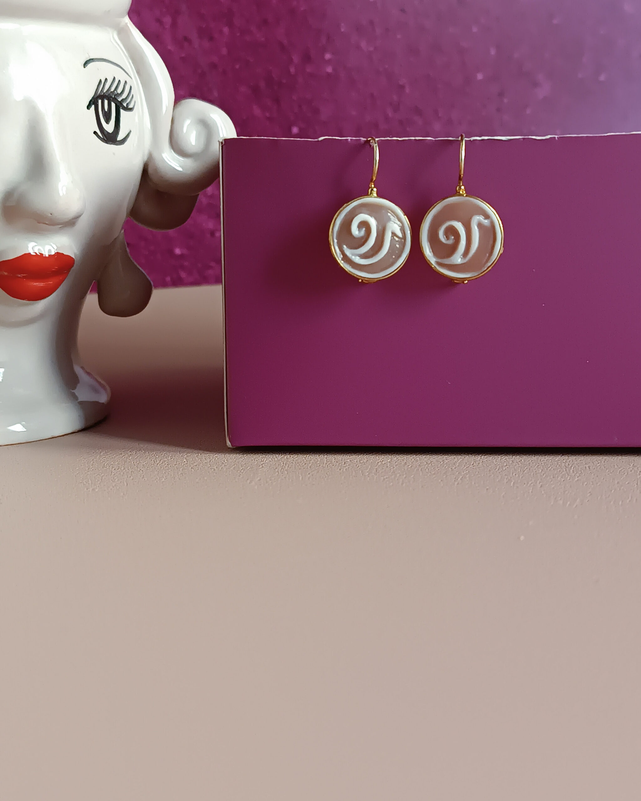 Orecchini Pendenti in Argento 925 Placcato Oro con Cammei di Torre del Greco
