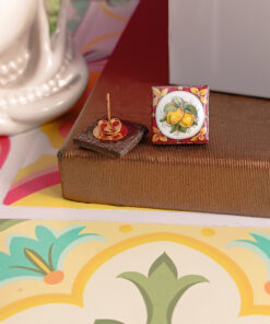 Deliziosi bottoni al lobo in pietra lavica e Ceramica di Caltagirone con immagine dei limoni di Sicilia.
