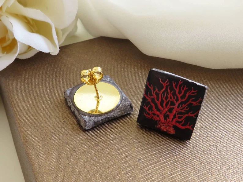 Deliziose borchiette quadrate al lobo realizzate in pietra lavica e ceramica.