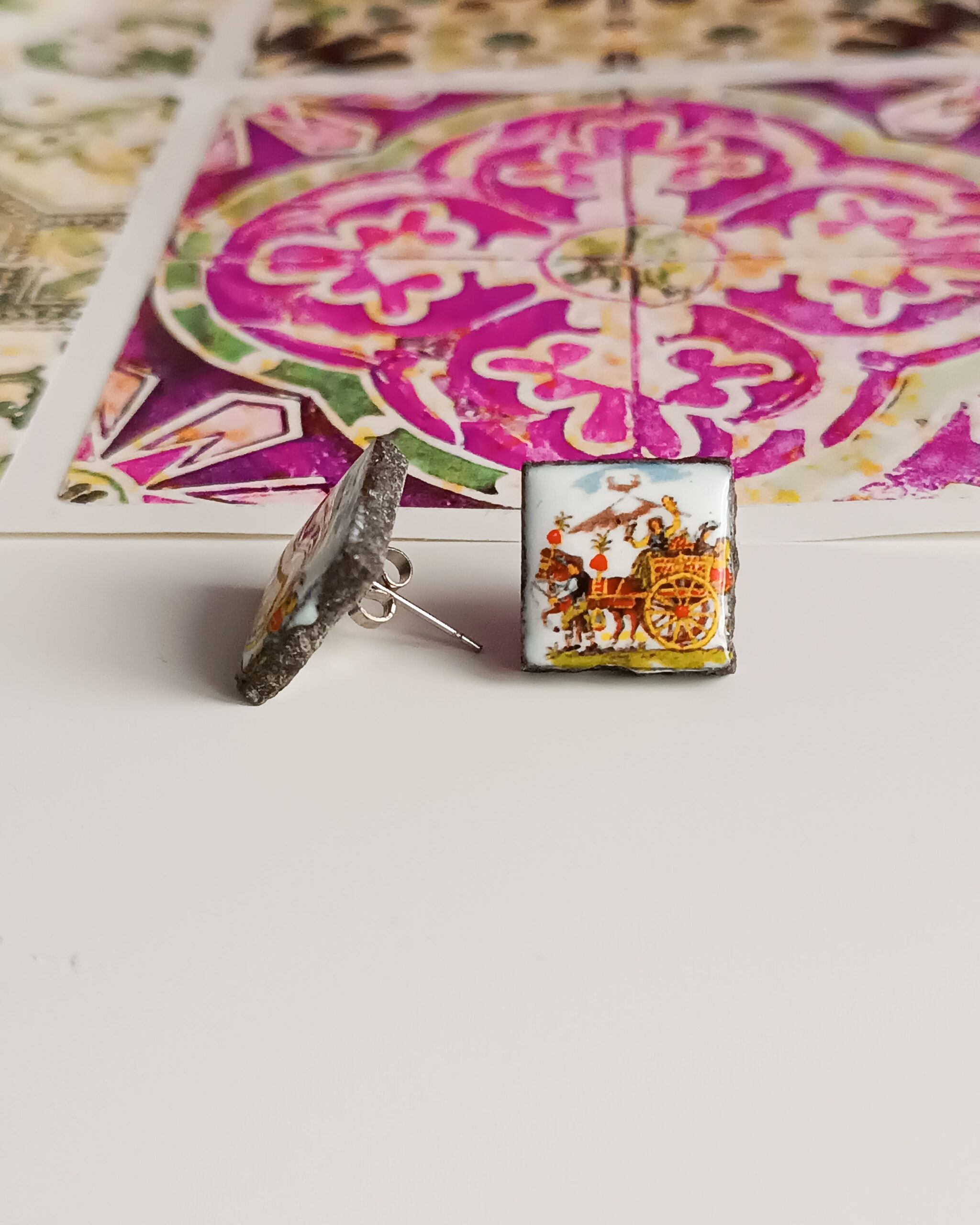 Orecchini Siciliani al Lobo con Mattonelle in Ceramica di Caltagirone