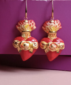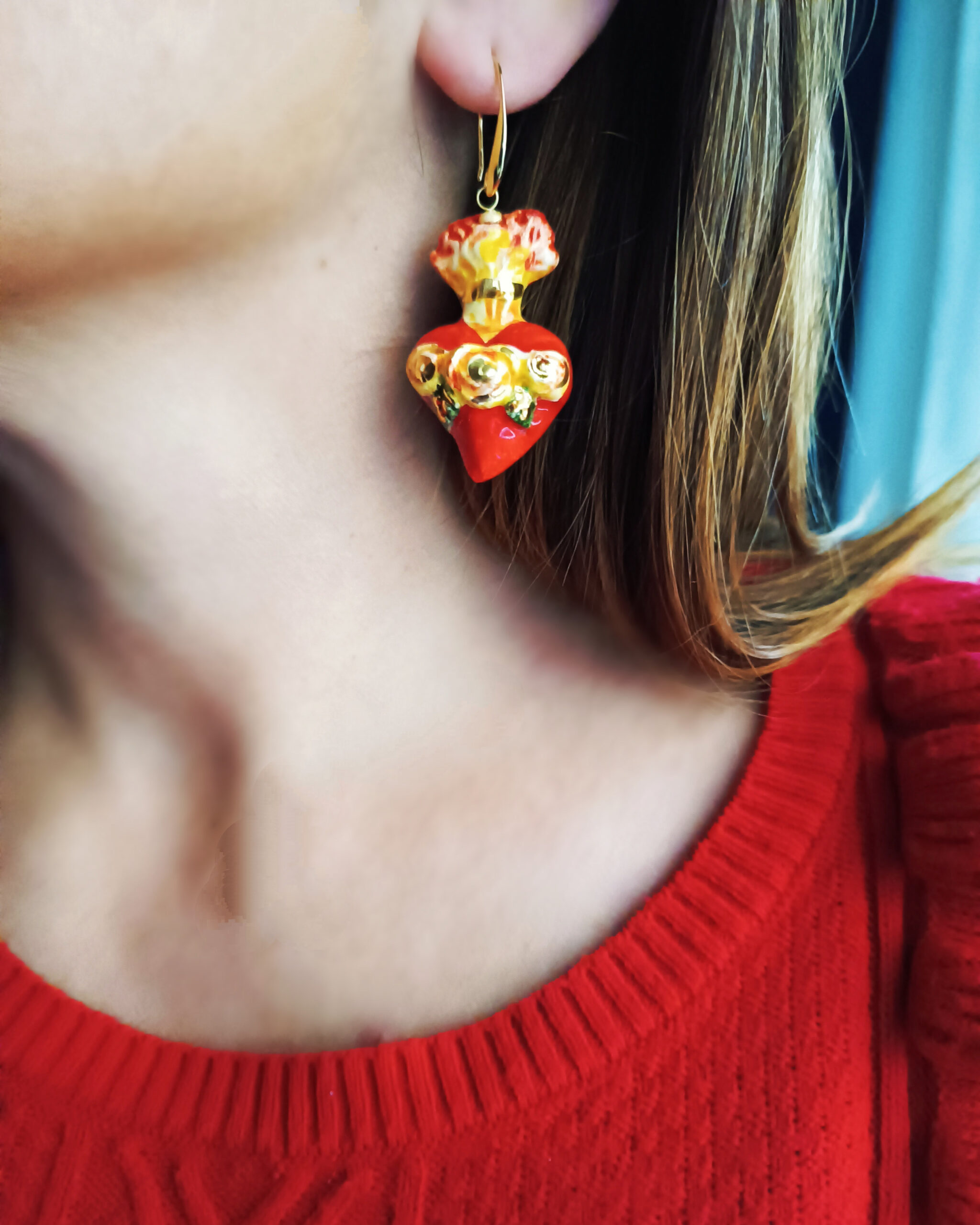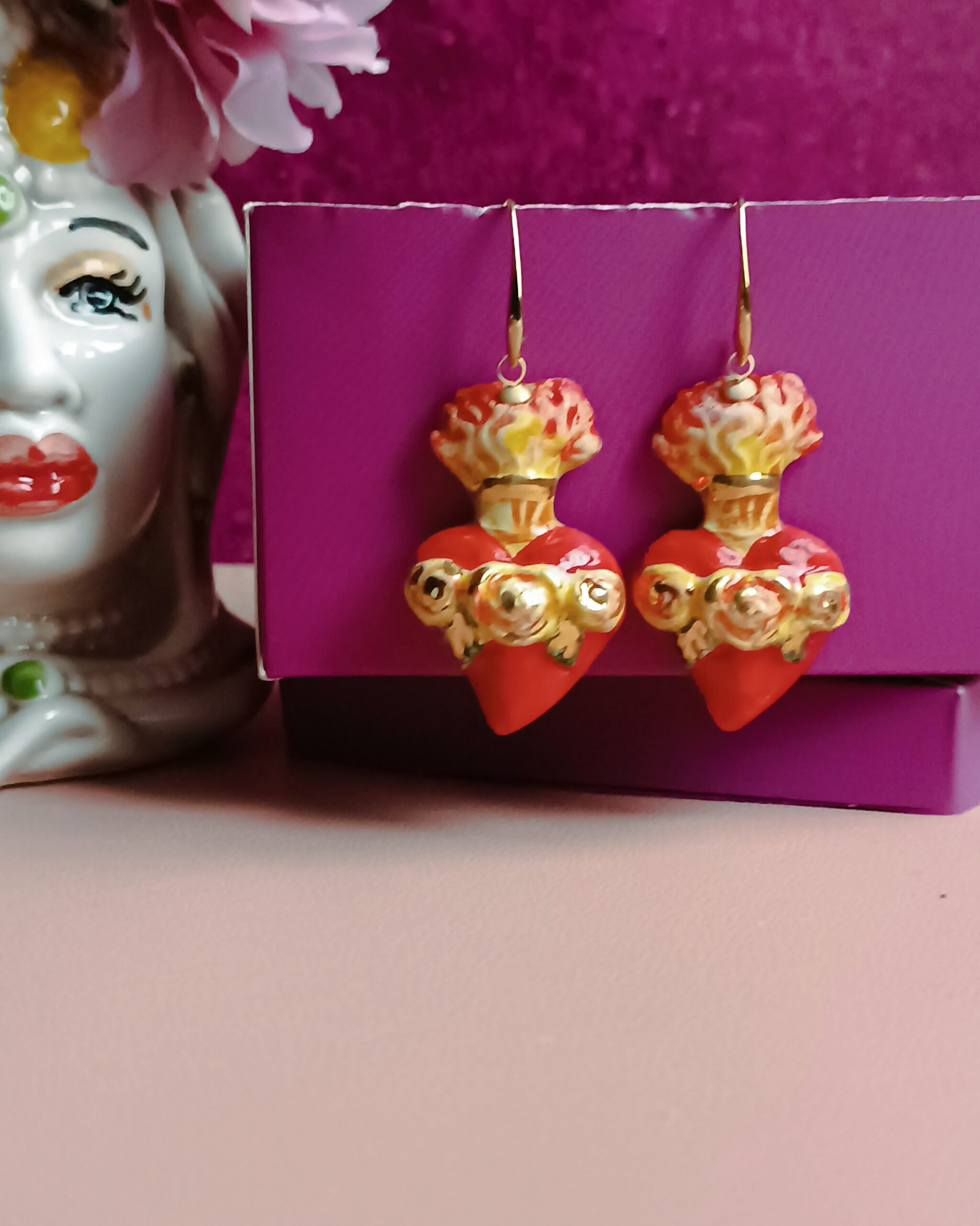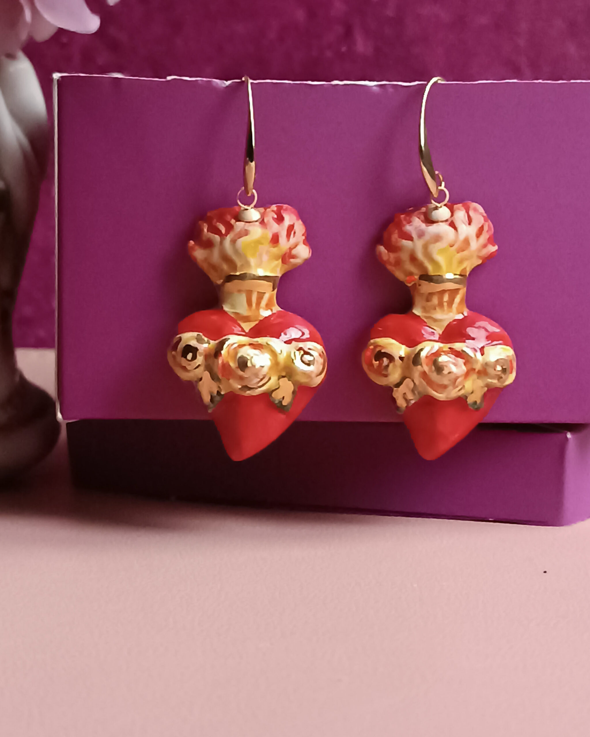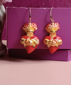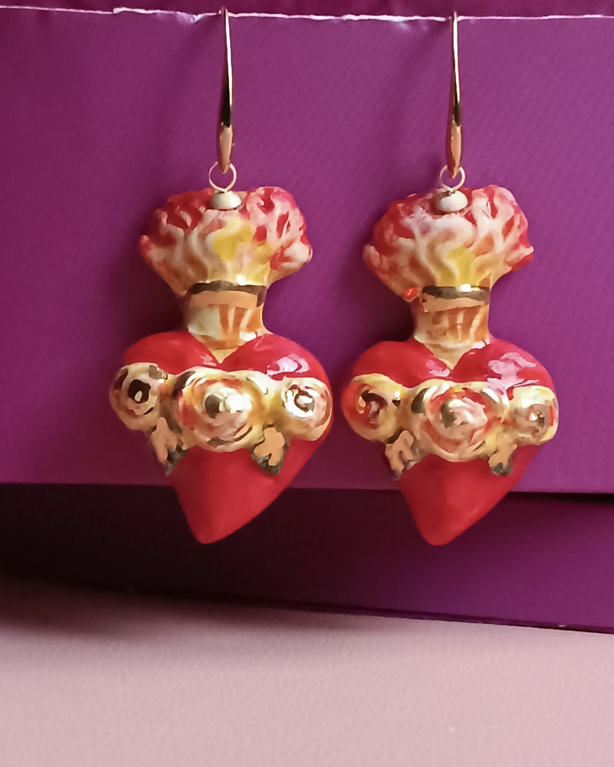 Questi orecchini con cuori sacri in ceramica alla moda e originali, abbelliranno il tuo viso donando una nota sofisticata e barocca al tuo look.