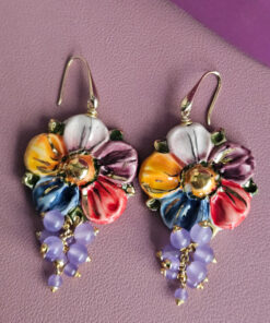Un vero incanto per gli occhi: questi orecchini floreali sono una piccola opera d’arte da indossare. Ogni petalo colorato, delicatamente dipinto a mano in sfumature pastello, dal lavanda al turchese, passando per il corallo e l’arancio, racconta una storia di eleganza e originalità.