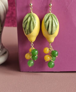 Orecchini Siciliani con Limoni in Ceramica di Caltagirone Dipinti a Mano