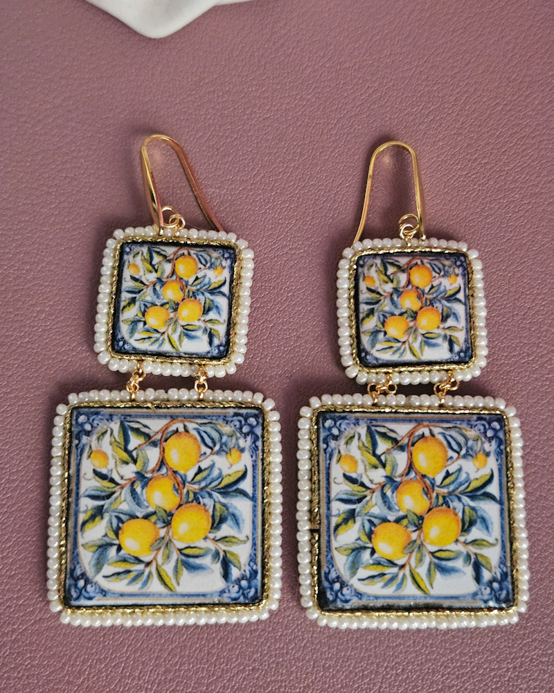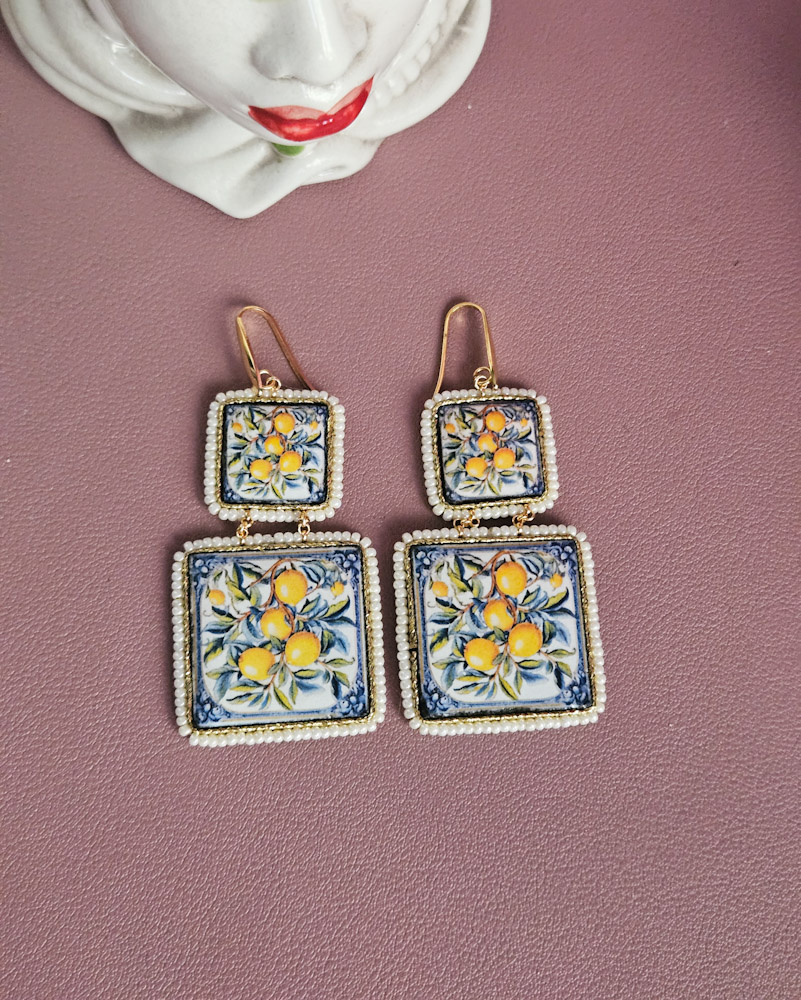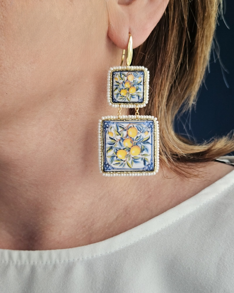 Orecchini Siciliani con Mattonelle in Ceramica di Caltagirone