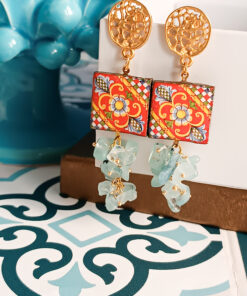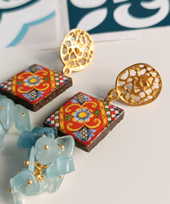 Oltre ai tipici simboli siciliani, amiamo anche proporre negli orecchini le stesse riproduzioni delle maioliche di Caltagirone che spesso si trovano come decori nelle pareti delle abitazioni siciliane.