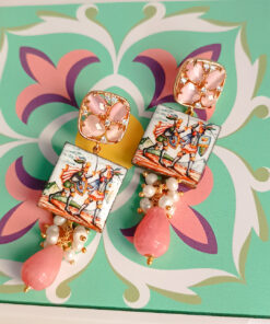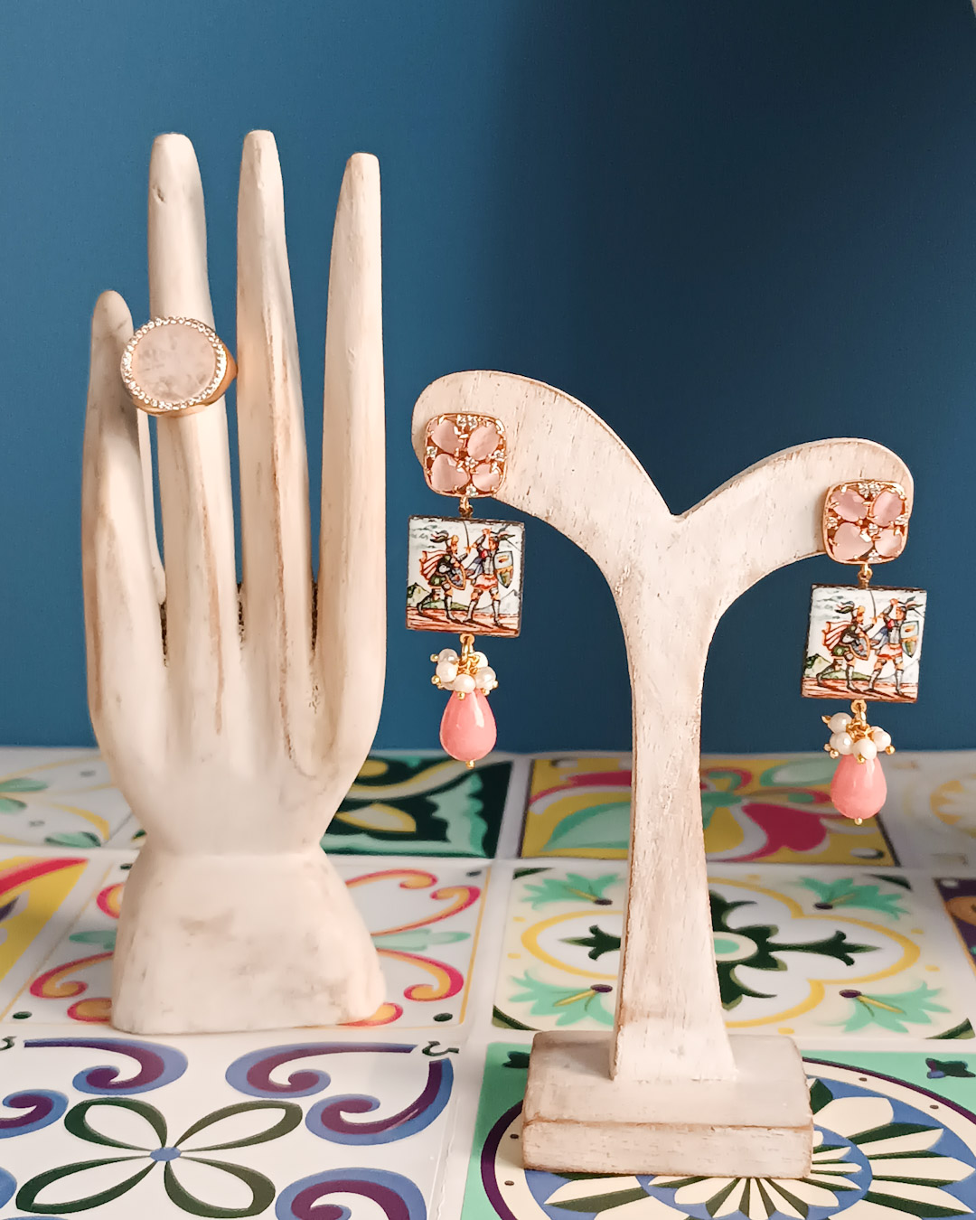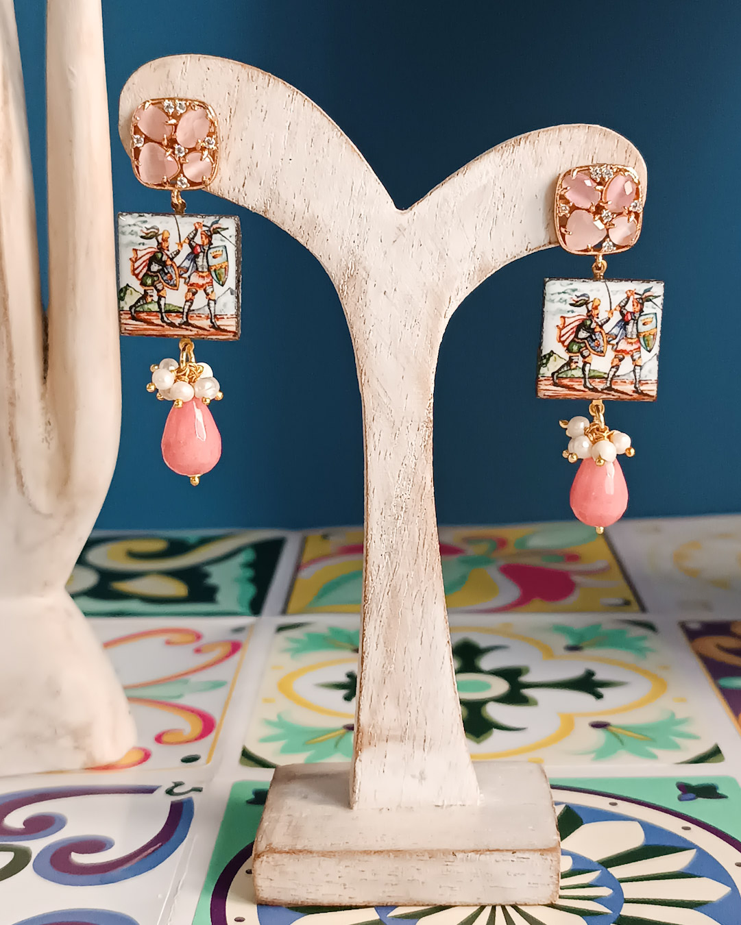 Orecchini Siciliani con Mattonelle in Ceramica di Caltagirone e Pietre Rosa
