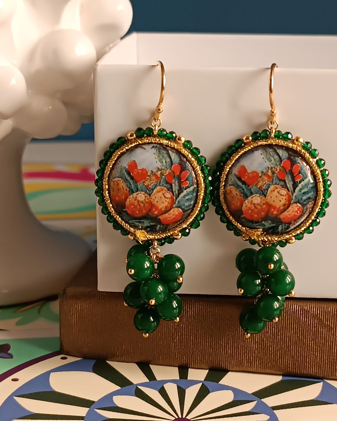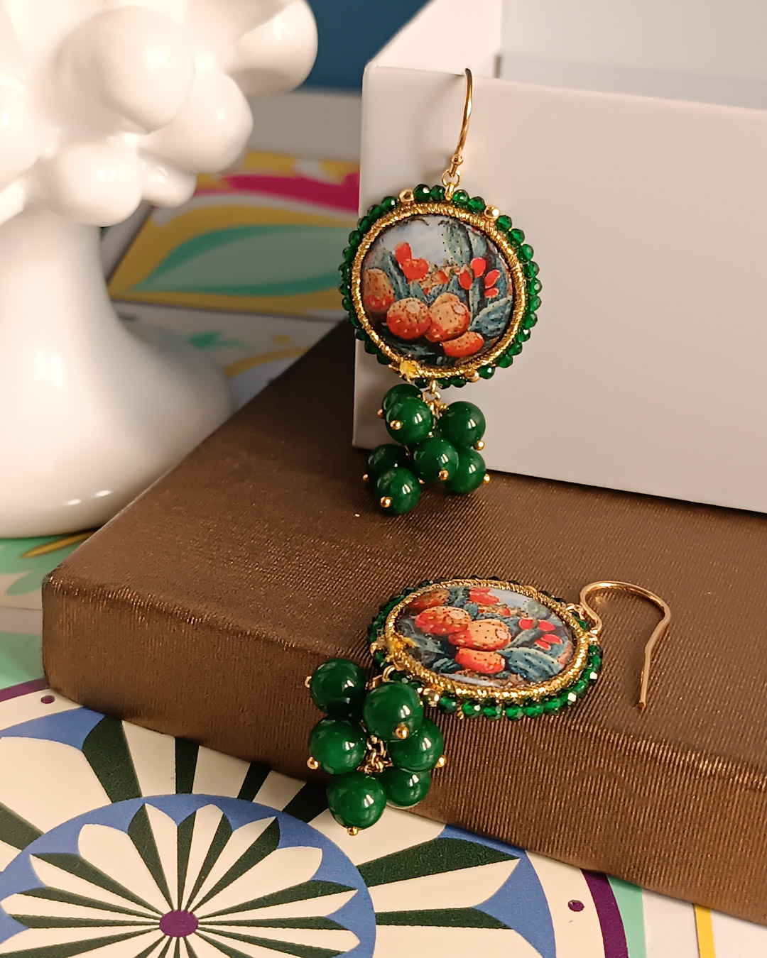 Orecchini Siciliani con Mattonelle in Ceramica di Caltagirone e Pietre Verdi