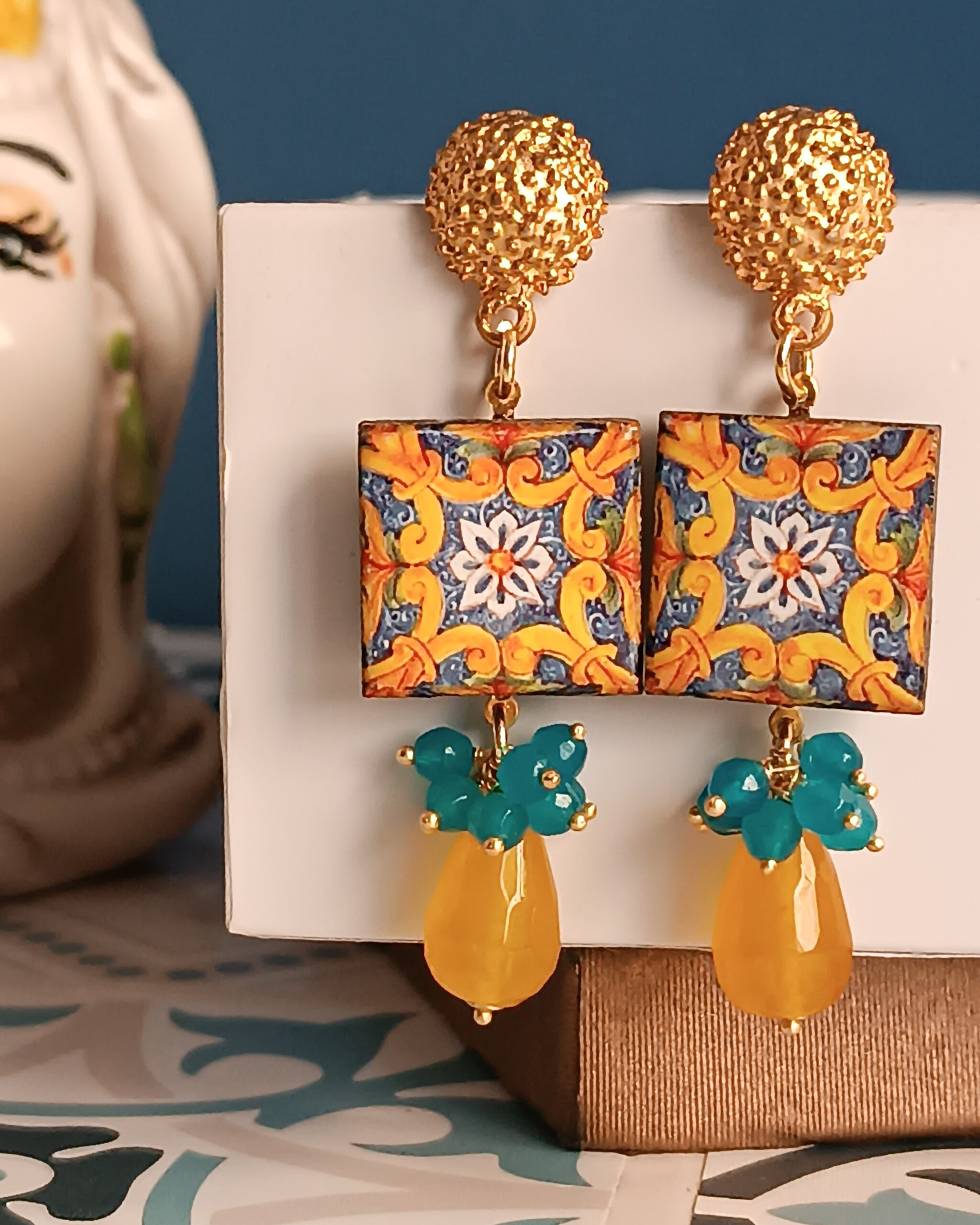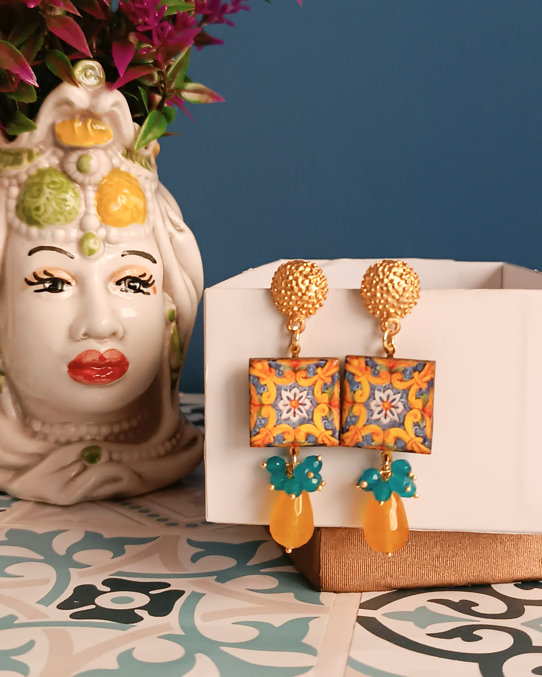 Se ami i decori colorati delle maioliche siciliane, questi orecchini fanno proprio per te.