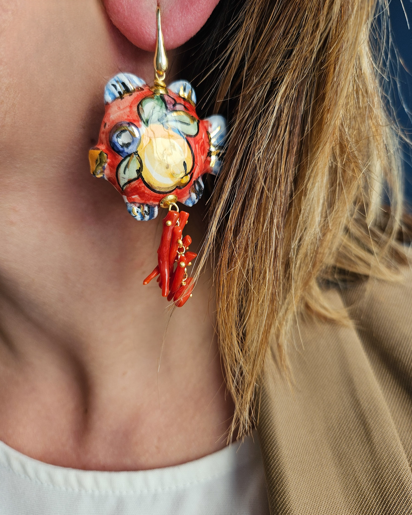 Chi ha detto che i pesciolini puoi metterli solo d’estate? Quelli belli di Chapeau in Ceramica di Caltagirone finemente dipinta a mano, puoi indossarli tutto l’anno, avendo il privilegio di sfoggiare un pezzo di artigianato di unica bellezza.