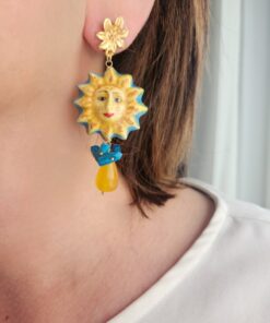 Orecchini Siciliani con Sole Ceramica di Caltagirone Dipinta a Mano e Quarzo Citrino
