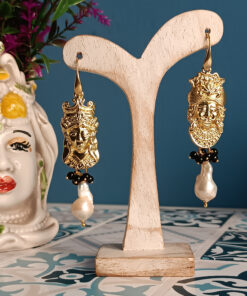 Orecchini Siciliani con Teste di Moro Dorate e Perle Barocche