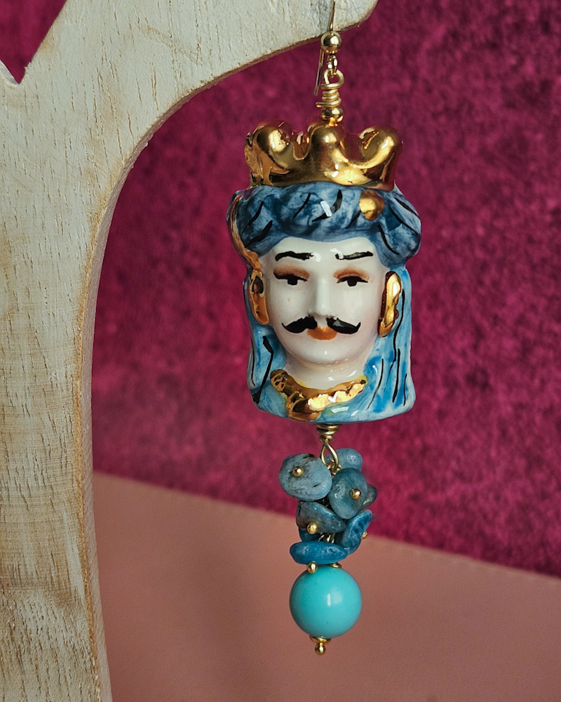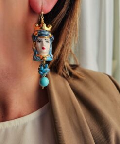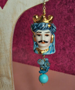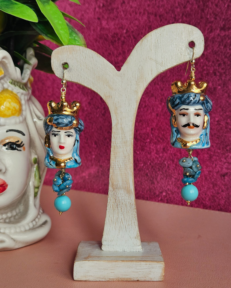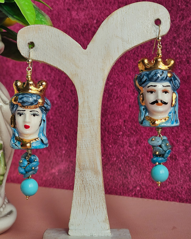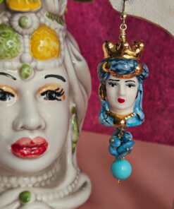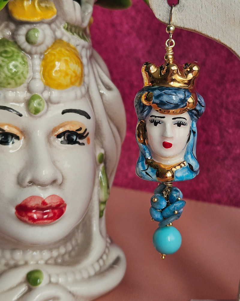 Orecchini Siciliani con Teste di Moro in Ceramica di Caltagirone Dipinta a Mano e Pasta di Turchese