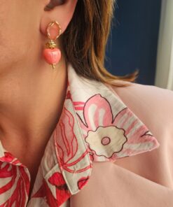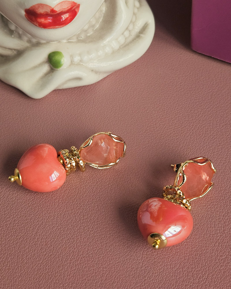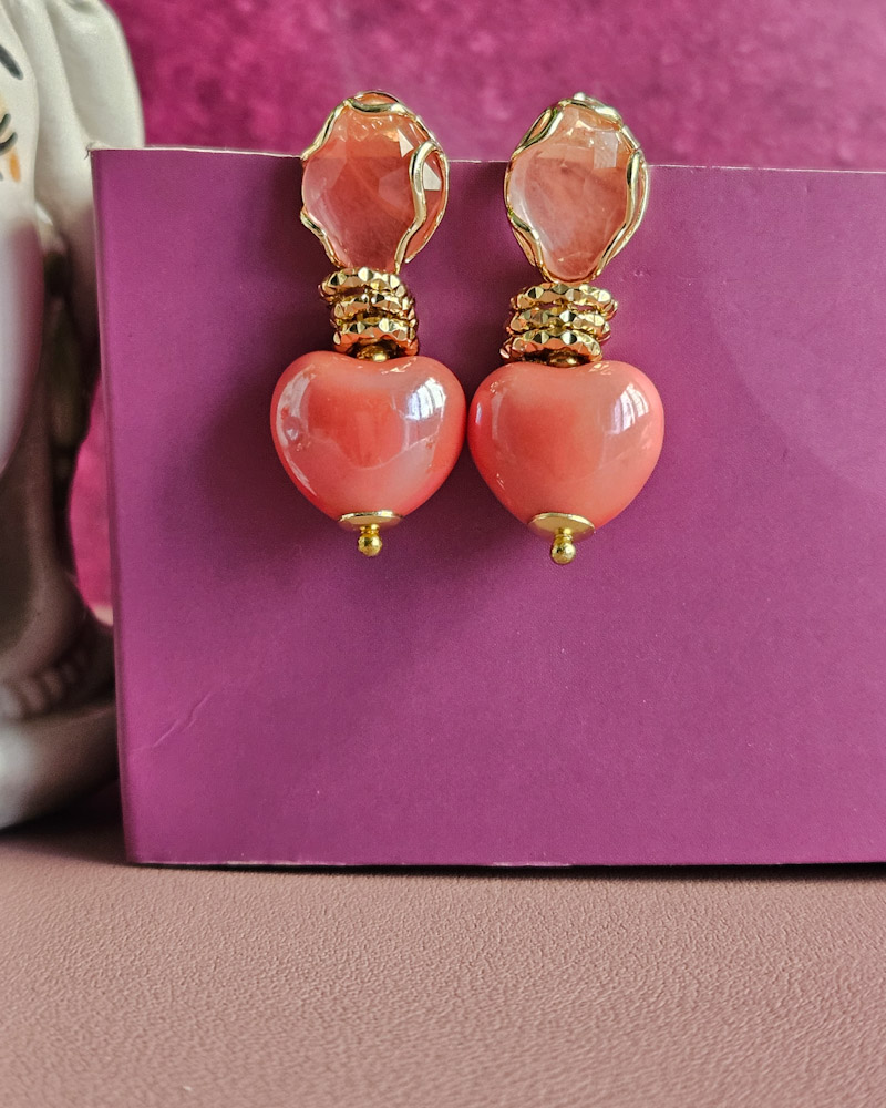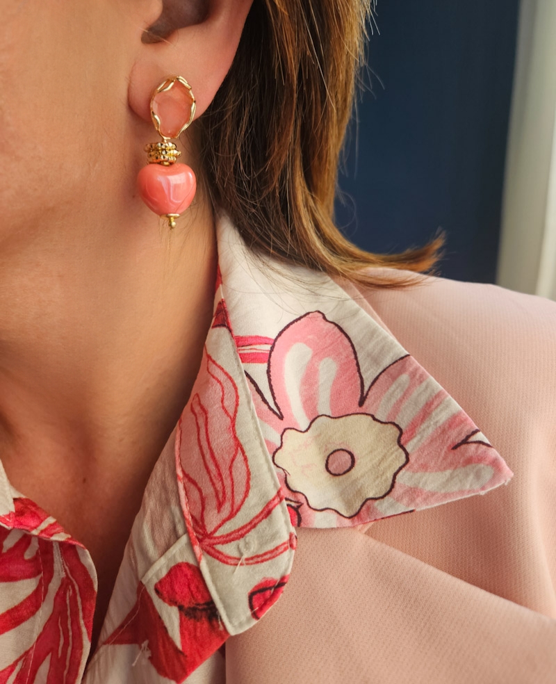 Orecchini SUGAR con Cuori Rosa Corallo in Ceramica e Occhio di Gatto Rosa Corallo