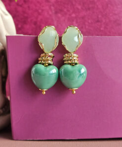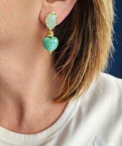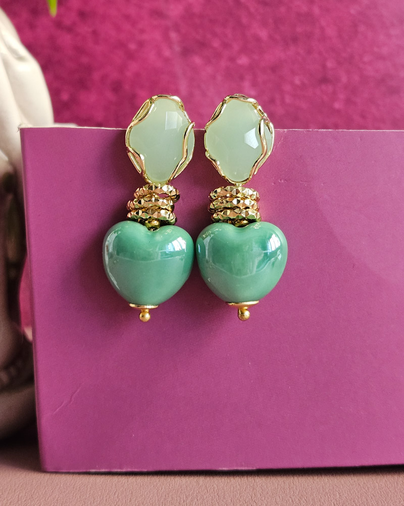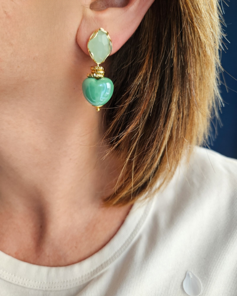Orecchini SUGAR con Cuori Verde Menta in Ceramica e Occhio di Gatto Verde