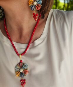 Parure Collana e Orecchini con Fiori in Ceramica di Caltagirone
