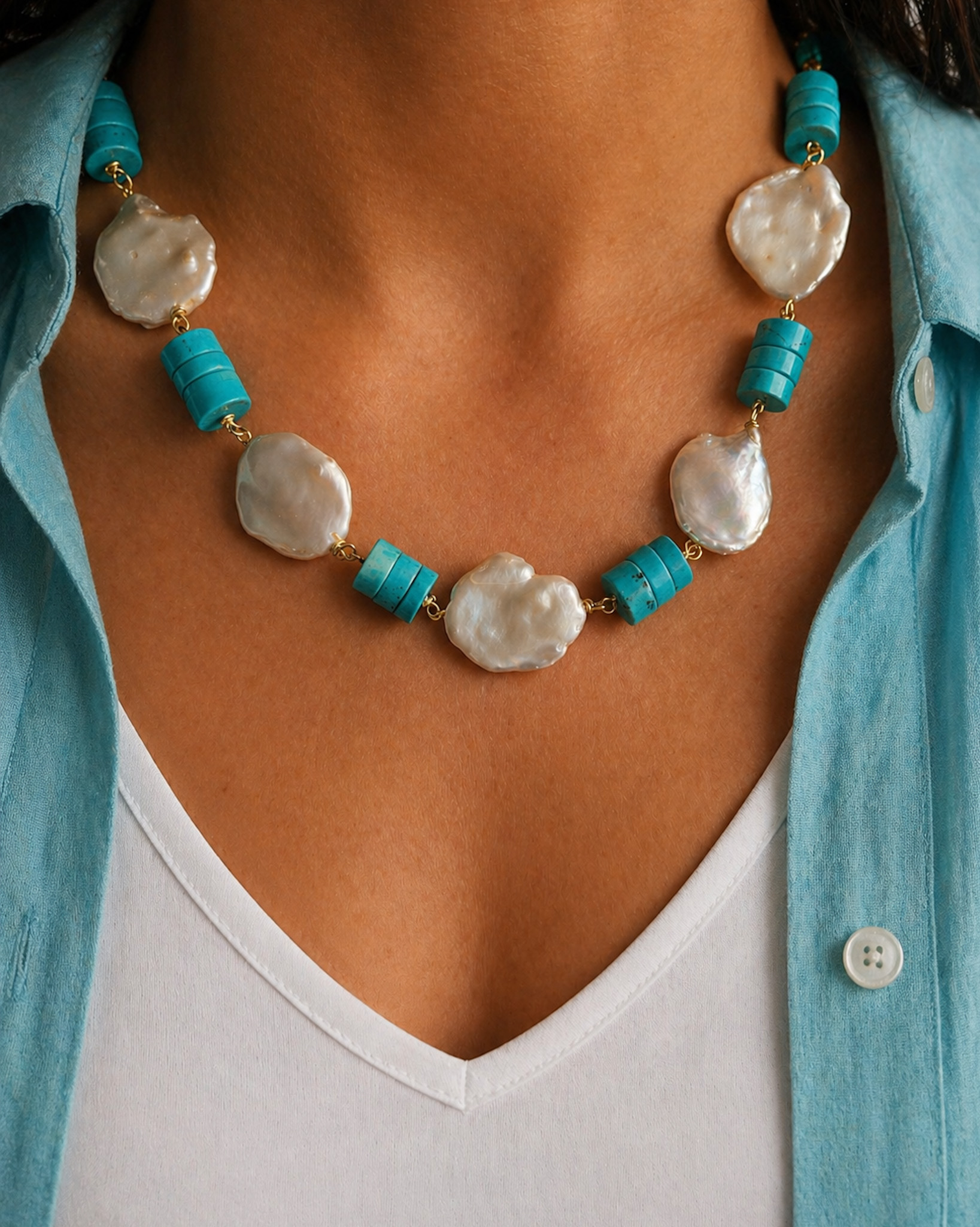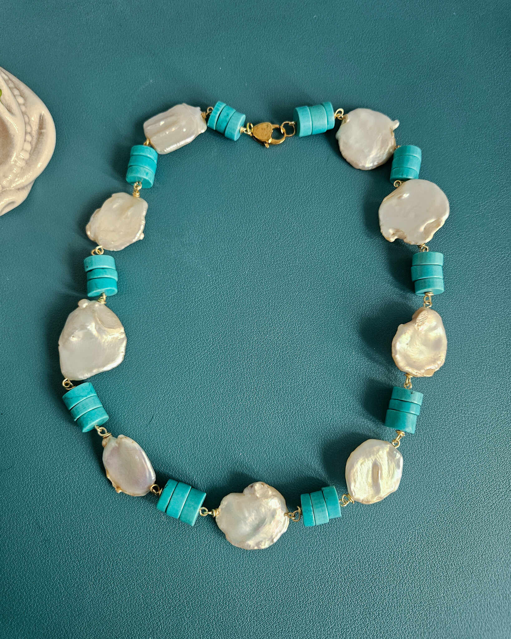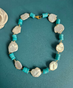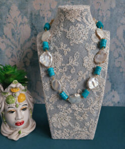 Parure con Pasta di Turchese e Perle Barocche Piatte